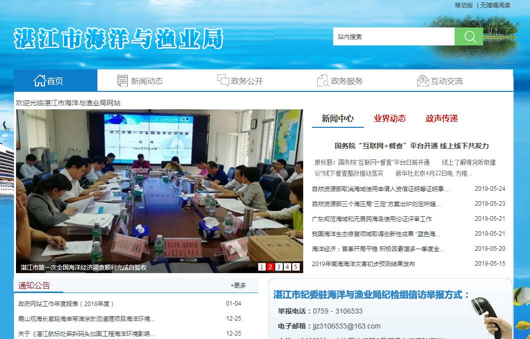 湛江市海洋与渔业局主要职责:(一)贯彻执行国家和省有关海洋与渔业工作的方针政策和法律法规,起草有关地方规范性文件草案,组织海洋战略研究,拟订并监督实施海洋事业、渔业的发展战略、政策和管理制度。(二)综合管理、协调和指导海洋开发利用和保护,负责海洋功能区划、海洋主体功能区的拟订、修编和实施以及海岸开发利用和保护的有关工作。(三)承担海洋经济运行监测、评价及信息发布的责任,组织实施海洋与渔业经济和社会发展的统计、核算,提出优化海洋经济结构、调整产业布局的建议,组织开展海洋与渔业领域节能减排和应对气候变化的工作。(四)承担规范管辖海域使用秩序的责任。监督管理国家、省授权的海域使用,承担海域使用项目审核和海域使用权属管理及海上人工构筑物管理;组织海域界线、海岸线勘定和管理,监督管理海上人工构筑物设置,负责涉海工程项目的有关工作。(五)承担海岛生态保护和无居民海岛合法使用管理的责任。拟订海岛保护与开发规划、政策并监督实施,组织实施无居民海岛的使用管理。(六)承担海洋环境保护和修复的责任。组织海洋资源环境调查、监测、监视、评价和信息发布,组织实施重点海域排污总量控制制度,监督海洋倾废、陆源污染物排海,负责海洋和渔业水域生态环境保护、水生生物资源保护,监督管理海洋、渔业自然保护区和特别保护区,负责保护区修复典型性、代表性海洋生态系统,管理国家、省分工的海洋自然资源。(七)承担海洋环境观测预报、海洋灾害预警预报,指导和监督渔业防灾减灾工作,负责海洋与渔业突发公共事件应急工作。(八)组织落实渔业和渔区发展政策措施,指导渔业产业结构调整、产品品质改善、渔业产业化和可持续发展,组织开展水生动物疫病防控工作,实施符合安全标准的水产品认证,负责初级水产品生产环节质量安全监管,发布水产品质量安全信息,组织指导渔业基础设施建设。(九)负责渔业许可和渔港、渔船、渔机、渔具渔法和渔业电信的监督管理,组织实施伏季休渔制度,承担远洋渔业管理工作。(十)组织实施“科技兴海”、“科技兴渔”战略,组织海洋与渔业科学技术研究和应用推广,组织实施海水利用和海洋可再生能源研发应用,承担海洋与渔业科技创新体系和数字海洋建设。(十一)组织开展海洋与渔业方面的对外交流与合作。(十二)承担海洋监察、渔政管理、渔港监督和渔业船舶监督、检验的责任。负责辖区内的巡航监视、监督管理,查处违法活动,维护国家海洋与渔业权益,管理市海洋与渔业执法队伍。(十三)承办市人民政府和省海洋与渔业局交办的其他事项。