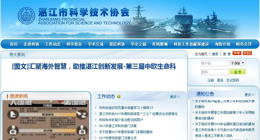 湛江市科学技术协会(简称湛江市科协)是湛江市科学技术工作者的群众组织,是中共湛江市委和湛江市人民政府领导下的人民团体,是党和政府联系科学技术工作者的桥梁和纽带,是推动科学技术事业发展的重要力量。湛江市科协的宗旨是:坚持以马克思列宁主义、毛泽东思想、邓小平理论、“三个代表”重要思想和科学发展观为指导,团结、组织和动员全市科学技术工作者树立科学发展观,坚持科学技术是第一生产力的思想,实施科教兴国战略和可持续发展战略,促进科学技术的繁荣和发展,促进科学技术的普及和推广,促进科学技术人才的成长和提高,促进科学技术与经济的结合,参与湛江市地方民主政治,维护科学技术工作者的合法权益,为科学技术工作者服务,为经济社会全面协调可持续发展服务,为提高全民科学文化素质服务。其主要职责:开展学术交流,活跃学术思想,促进学科发展和科技进步。弘扬科学精神,普及科技知识,传播科学思想和科学方法,捍卫科学尊严,推广先进技术,开展群众性、社会性和经常性的科学技术教育活动,提高公众科学文化素质。组织科技工作者参与发展规划、科技政策、科技法规的制定,参与政治协商、科学决策、民主监督工作。反映科技工作者的意见和要求,维护科技工作者的合法权益。开展决策论证、咨询服务、科技协作,促进科技成果转化。接受委托,承担项目评估、成果鉴定、专业技术职务资格评审等任务。开展继续教育和培训工作。编辑出版科学、技术和科普书籍。表彰、奖励优秀科技工作者,举荐人才。开展民间国际科学技术交流活动,发展同港澳台及国外科技团体和科技工作者的友好交往。兴建和办好科学技术活动阵地,举办符合湛江市科协宗旨的公益性事业。开展全市性学会的业务管理和基层科协的业务指导工作。