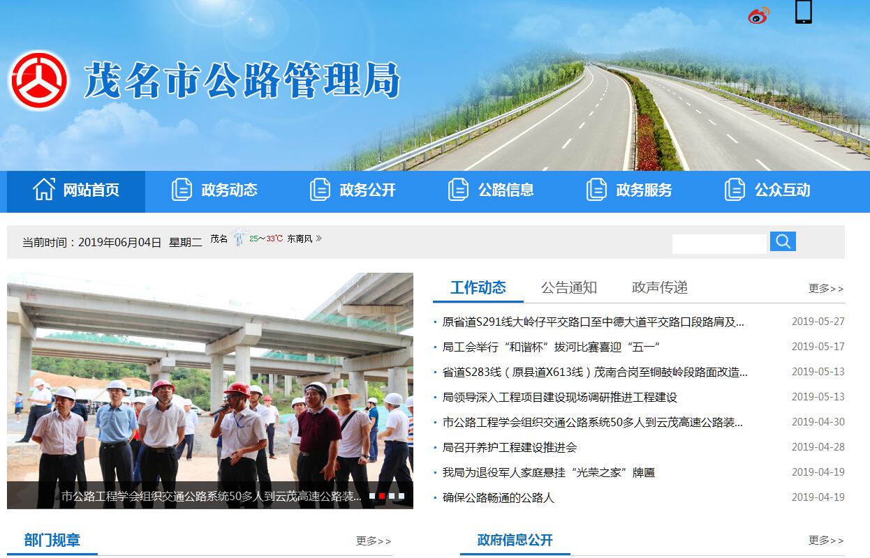 茂名市公路管理局是茂名市政府直属正处级事业单位,负责全市1209.794公里国省道和部分县乡道公路的建设、养护、管理工作及全市公路车辆通行费(年票)征收管理工作。茂名市公路管理局主要职责:(一)贯彻执行《中华人民共和国公路法》、《广东省公路路政管理条例》、《广东省高速公路管理条例》等法律、法规,按照上级交通公路部门的有关规定,制订具体的公路管理制度并组织实施。(二)参与拟定全市省养公路发展规划;组织实施经国家和省、市批准的国道、省道及其它有关道路建设计划。(三)按照分级分类管理的规定,负责公路建设、改造项目的审核工作;参与辖区内省养公路、改造项目的竣工验收;具体组织实施辖区内省养公路建设改造和养护管理(含经营性公路)。(四)负责辖区内省养公路路政管理,查处违反公路管理法律、法规行为。(五)按上级规定组织公路养路费等公路规费的征稽。(六)负责制订全市省养收费公路(桥梁、隧道)、收费站(点)的设置、调整、撤销以及收费标准的拟定、呈批工作。对全市省养公路收费站(点)实行具体管理。(七)负责公路科技项目成果申报及推广应用等工作,促进公路事业科技进步。(八)加强公路系统精神文明建设;组织实施创建文明样板路工作。(九)承办上级和市交通主管部门交办的其他事项。