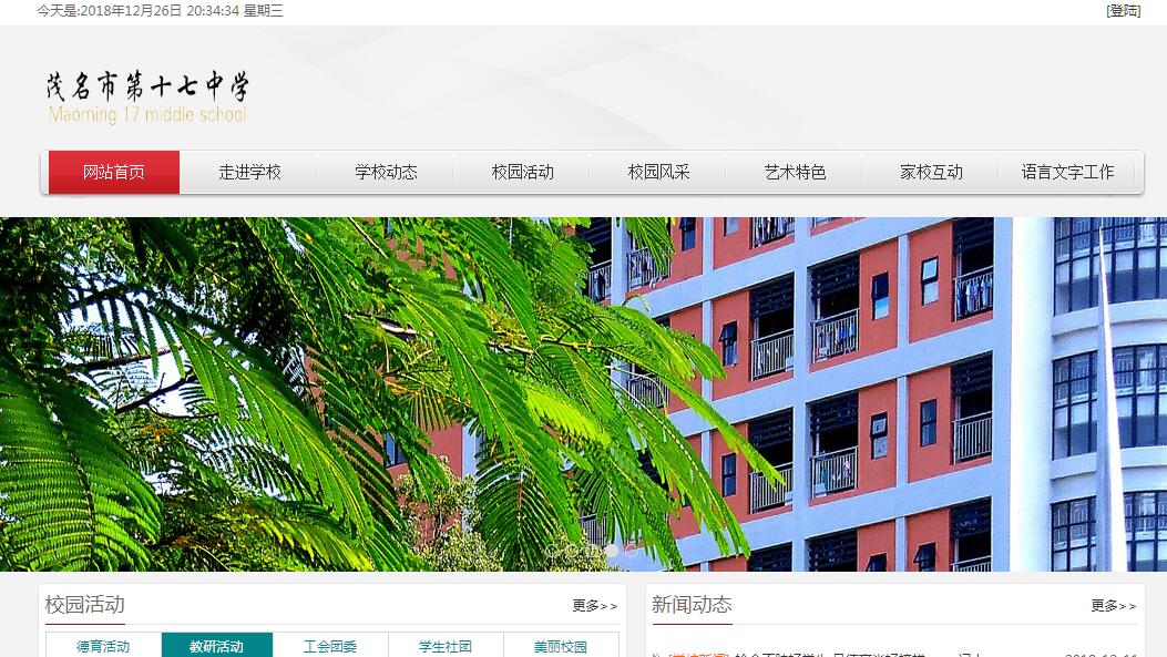 | 网站简介: 茂名市第十七中学是由原茂名市第十七中学和茂名市实验中学合并而成的广东省一级学校、茂名市直重点学校。原茂名市第十七中学创办于1961年,原茂名市实验中学是在原茂名市一中旧校址的基础上创办和发展起来的。两个学校都有悠久的办学历史,在办学过程中积累了丰富的办学经验,培育了深厚的文化内涵。学校先后获得了广东省先进青少年科技活动集体、广东省心理健康教育示范学校、广东省优秀现代教育技术实验学校、广东省安全文明校园、广东省中小学校本培训示范学校、茂名市美丽校园、茂名市科普示范学校、茂名市“优秀学生会”、茂名市“五星社团”等称号。在办学过程中,学校始终秉承“着眼于学生的全面发展和终身发展”的办学理念,不断加强和完善学校艺术教育工作的规范化、制度化和特色化建设,充分发挥艺术育人“不可替代的作用”,将艺术教育作为推进素质教育重要载体,学生的艺术素养、学校文化氛围都得到全面的提升,促进了教育教学质量的提高。 |