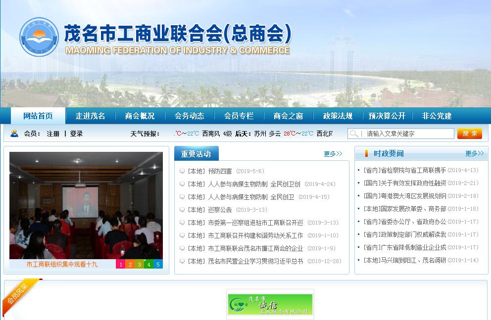 茂名市工商联成立于1985年6月。至2016年底,全市共有5个县(市、区)、112个乡镇和街道成立了商会组织,有行业商会、同业公会26个,全市共有会员11206个,会员中担任县(区)级以上人大代表148人,政协委员248人。茂名市工商联是领导的具有统战性、经济性、民间性的人民团体,是党和政府联系非公有制经济人士的桥梁和纽带,政府管理非公有制经济的助手。茂名市工商联机关主要任务是:(一)参与党和国家有关大政方针及本市政治、经济、社会生活中重大问题的政治协商,参政议政,民主监督;对有关非公有制经济的立法工作提出意见和建议,参与有关非公有制经济发展规划和政策规定的讨论研究。(二)做好非公有制经济人士思想政治工作,团结、帮助、引导、教育他们爱国、敬业、守法,培养坚决拥护党的领导的积极分子队伍,协助做好非公有制经济代表人士政治安排的推荐工作。(三)参与政府相关的经济活动,与政府有关部门建立工作联系制度;协助政府有关部门对会员企业生产经营情况及财务、税收进行检查和监督;协助做好民营科技企业申报评定和科技项目的推荐,开展民营企业的质量技术监督;牵头管理会员企业人员的会计从业资格、专业技术资格(职称)的考试、评审和初次认定等工作,并纳入当地人事(财政)部门统一组织。(四)反映会员的意见、要求,依法维护非公有制经济人士的合法权益,接受他们的投诉和法律咨询,协助会员企业处理经济纠纷,参与经济仲裁。(五)为会员提供信息、咨询、培训及人才交流、人事代理等服务,组织会员企业举办和参加各类经贸活动,参加国内外考察,帮助会员企业拓展市场,为会员企业办理产品产地证明书,为会员企业中符合条件的人员申办户口和出国(境)进行商务活动出具证明、申办证照等。(六)加强与香港、澳门、台湾地区以及世界各国工商社团和工商经济界人士的联系,推动经贸合作和技术交流,协助政府引导资金、技术、人才等。(七)配合有关部门开展非公有制会员企业党建工作。(八)负责管理行业商会、同业公会;指导本市各级工商联工作;协助有关部门指导私营企业协会、个体劳动者协会和以非公有制经济基础为主体的社团组织。(九)办好会办企业。(十)承办市委、市政府和省工商联交办的其他任务。