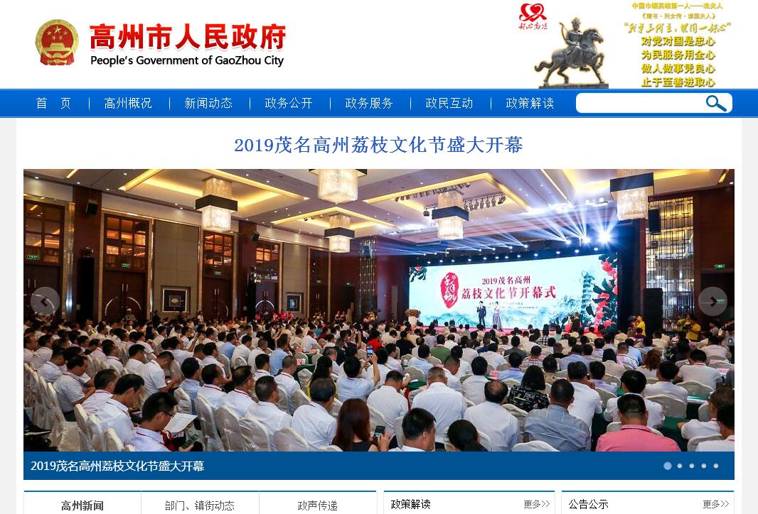 高州市是“三个代表”重要思想发源地、冼夫人故里、中国荔乡。全市总面积3276平方公里,其中山地377万亩、耕地91万亩,辖23个镇、5个街道,人口182万。城市建成区面积32平方公里,人口36万。高州地处粤西桂东之交通要冲,洛湛铁路,207国道,280、283省道和茂高快线交汇纵贯全市。随着包茂高速、汕湛高速的相继建成,从高州出发,半小时可达深茂高铁和博贺港,一小时可达湛江新机场,三个半小时可达广州。历史源远流长。高州秦属桂林、象郡二郡,汉属合浦郡高凉县,南朝梁大同元年(公元535年)置立高州,此为高州之始。明洪武元年(公元1368年)设立高州府,为广东下四府之首,民国撤府留县。1993年6月撤县设市(县级)。高州城始建于隋开皇十八年(公元598年),迄今已1400多年,从唐代至民国,一直是州、郡、路、府、道、专区一级行政治地,为粤西的政治、经济、文化、军事中心。现为省级历史文化名城、中国楹联文化城市,正在创建国家级历史文化名城。文化底蕴深厚。高州境内有文化遗址250多处,宝光塔、文笔塔、艮塔、冼太庙、观山寺、南宫庵群、南皋学舍等闻名遐迩。我国历史上杰出的政治家、军事家和社会活动家冼夫人是高州人,她历经梁、陈、隋三朝,一生致力维护国家统一,备受历代皇朝封赠和百姓敬仰。周恩来总理称她为“中国巾帼英雄第一人”,江泽民同志称其为“我辈及后人永远学习的楷模”。岭南道教先驱潘茂名、唐代名宦高力士、清末工部左侍郎杨颐、新中国首任中国农科院院长丁颖,以及著名画家丁衍镛等均为高州人。高州有木偶戏、山歌、版画、八音锣鼓、冼夫人庙堂文化等非物质文化遗产。农业基础扎实。高州水果种植面积136万亩,年产水果122万吨,是“全国水果第一市”,5大类12个水果品种先后获全国“金、银、铜”牌奖和名牌产品称号。已形成荔枝、龙眼、香蕉、油茶、北运菜、罗非鱼、生猪、蛋鸡、鳄鱼等10大农产品生产基地。农业总产值连续多年名列广东各县(市)第一,山地亩产值居全国之冠,曾被誉为“广东省山区综合开发的一面旗帜”。2000年2月,江泽民同志亲临高州视察,对高州农业综合开发所取得的成绩给予充分肯定,并亲笔题词“搞好山区综合开发,促进农村经济发展”。教育医疗发达。高州素有“广东四大文教之乡”之一的美誉,读书风气浓。全市现有公办中小学346所、民办中小学16所、公办职业高中2所,民办中等职业技术学校3所。在校学生26.4万人,在职公办教职工1.6万人。高州各类医疗卫生机构942个,其中综合医院2所、专科医院3所,市人民医院是“三甲”医院,市中医院是“三甲”中医医院。全市住院病床7000多张,医疗技术人员6000多人,县域住院率95.1%。中央改革办充分肯定高州医改成果,称“实现大病不出县的经验值得推广”。生态环境良好。高州东北部是连绵的山地,中央腹部是起伏的丘陵,西部南部是广阔的台地、平原,地势大体是东北高,西南低。森林覆盖率67.36%。境内有鉴江河、曹江河、陵江河、云潭河、沙田河、新垌河等10条大江大河,流量大,枯水期短,河流总长度925公里,其中鉴江流经高州境内全长231公里,流域面积2689平方公里。高州境内有水库山塘湖泊共计600多处,其中距市区东北25公里的高州水库,集雨面积1002平方公里,库容量12.8亿立方米,是全国大I型水库,肩负着高州、茂名、湛江吴川等地区生产、生活供水重任。旅游资源丰富。2004年起,高州就被列为北京、上海、广东等七省市联合签署的《郑州宣言》共同打造的红色旅游线路,即“上海—南昌—井岗山—瑞金—长汀—高州—延安—西柏坡—北京”中的重要一站。高州有优美的自然山水风光和宏大的“三高”农业生态,高凉岭、仙人洞、三官山、平云山、佛子岭等风光旖旎,高州水库有“百鸟浮泽国”美誉。高州有丰富的文化遗存,据文物普查资料显示,被《中国文物分布图》收录的达204处。现正在利用红色、绿色、古色“三色”旅游资源大力发展全域旅游。