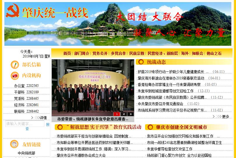 中共肇庆市委统战部主要职责:(一)贯彻执行中央、省委和市委关于统一战线的方针、政策;调查研究统一战线的理论和重要的方针政策;提出开展肇庆统战工作的意见和建议。(二)负责联系市各民主党派和无党派代表人士,及时通报情况,反映他们的意见和建议,发挥民主党派参政议政和民主监督的作用,支持、帮助民主党派加强自身建设,选拔、培养、新一代代表人物。(三)负责党外人士的政治安排,会同有关部门做好培养、选拔、推荐党外人士担任政府和司法机关领导职务的工作,协同做好党外后备干部队伍的建设及民主党派、无党派代表人士的培训工作。(四)负责开展以祖国统一为重点的海外统战工作,联系香港、澳门和海外有关社团及代表人士,协调港澳统战工作和政治团体的来访工作。(五)调查研究反映非公有制经济代表人士的情况,协调关系,提出政策建议;团结、帮助、教育、引导非公有制经济代表人士,开展思想政治工作。(六)调查研究无党派、党外知识分子的情况,反映意见,协调关系,提出政策建议,联系并培养党外知识分子的代表人物。(七)贯彻执行党中央、国务院对台工作的方针政策,研究两岸关系发展动向,会同有关部门统筹、指导、协调对台经贸工作及两地文化、科技、教育、体育、卫生等领域的交流合作,做好在台湾肇庆籍中、上层人士的联络工作,协调指导台资、台属企业,开展涉台宣传教育,促进两岸“三通”工作的开展。(八)贯彻执行党和国家关于民族、宗教工作的方针政策,调查研究民族、宗教状况,开展民族、宗教政策宣传,促进民族地区经济和社会各项事业的发展;依法保护公民宗教信仰自由,保护宗教团体和宗教活动场所的合法权利,保护宗教教职人员履行正常的教务活动,保护信教群众正常的宗教活动,防止和制止利用宗教进行非法、违法活动,抵制境外敌对势力利用宗教进行渗透;推动宗教界人士进行爱国主义、社会主义、拥护祖国统一和民族团结的自我教育,巩固和发展同宗教界的爱国统一战线,团结和动员广大信教群众为改革开放和经济建设服务;做好少数民族干部和宗教界上层人士的政治安排工作。(九)指导县(市)区党委统战工作,协调政府有关统战工作,联系、指导工商联工作。(十)完成市委和上级主管部门交办的其他任务。