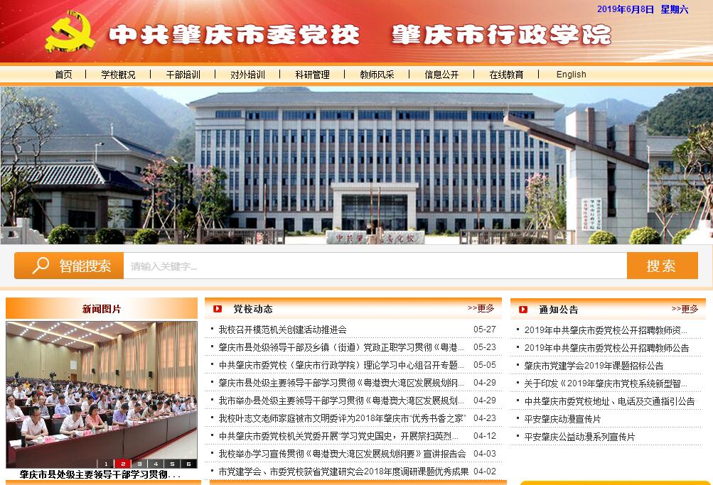 中共肇庆市委党校是在中共肇庆市委直接领导下培养党员领导干部和理论干部的学校,是党委的重要部门,是培训轮训党员领导干部的主渠道,是学习研究习近平新时代中国特色社会主义思想的重要阵地,是干部加强党性锻炼的熔炉。市委党校成立于1956年8月,时称中共高要地委党校。1959年更名为中共江门地委党校,并于1960年迁址江门城区。1963年更名为中共肇庆地委党校并迁回肇庆城区。1988年3月更名为中共肇庆市委党校。2001年10月增挂“肇庆市社会主义学院”牌子,同年11月,成立肇庆市行政学院,与中共肇庆市委党校合并,一套班子、三块牌子,实行校(院)务委员会领导体制,校(院)长由市委领导兼任。2017年10月,肇庆市委按照“1+4”原则整合了市中心区党校资源,即撤销中心区端州、鼎湖、高要、四会等4所县级党校,其人员、资产及业务整合到市委党校。整合后,全市共有5所党校,包括中共肇庆市委党校,以及中共广宁县委党校、中共德庆县委党校、中共封开县委党校、中共怀集县委党校等4所县级党校。这4所县级党校同时也是市委党校分校。整合后的市委党校,不仅承担原有的党员领导干部、后备干部及公务员培训职责,而且承接原中心区县级党校培训轮训副科级党员干部和基层党员干部的职能。同时,还承担着围绕中心服务大局开展决策咨询、课题调研和理论研究,新型党校智库建设,对重大思想观点和重要工作部署进行专题宣讲和政策解读,开展对外干部培训工作等任务。市委党校现有在职人员117名,其中专职教师35名;所有人员中具有副高以上职称16名、中级职称33名。内设机构共16个科室,分别是办公室、党委办、教务科、培训一科、培训二科、行政科、财务科、科研办、电教科、后勤科、哲学教研室、经济学教研室、党史党建教研室、政法教研室、社会文化与统战理论教研室、市情研究中心。市委党校新校于2017年10月投入使用,校址位于广东省肇庆市鼎湖区广利院主,属于肇庆新区范围,处于沟通广东与大西南的咽喉位置,贵广高铁、南广高铁、广佛肇轻轨、广佛肇高速、广昆高速等均在这里交汇,交通十分便捷。市委党校占地面积约120亩,依山傍水、空气清新、环境幽雅。总建筑面积约4.66万平方米,主要有综合楼(包含教学楼、报告厅、行政楼)、学员楼、食堂、文体馆、室外游泳池等,可同时容纳600人培训学习、就餐和住宿。其中,综合楼约1.36万平方米,兼备行政办公、教学会议和考试中心的功能,有500人报告厅1个、40~180人多媒体课室13间、会议(面试)室15间;学员楼约2.1万平方米,共353间房578个床位,含标单124间、标双225间、套房4间;食堂可同时容纳600人就餐;体育设施功能齐全,文体馆内含篮球场1个、羽毛球场4个、乒乓球台4张,设有50×25米的室外标准游泳池。室内消防、公共照明和排气换气均实现智能化控制,空调采用集中供能方式。近年来,在市委的正确领导下,市委党校以全市干部教育培训为中心工作,主要举办县处级领导干部进修班、乡镇(街道)党(工)委书记轮训班、乡镇(街道)镇长(主任)轮训班、中青年干部培训班、县(市、区)直局长轮训班和乡镇党校理论骨干培训班等主体班次;承担全市公务员培训职能,举办全市公务员初任培训班、市直科级公务员任职培训班、全市公务员全员培训班等公务员班次。此外,市委党校积极拓展对外培训业务,承接省内外机关和企事业单位委托的干部培训工作,提供培训场地、课程项目以及教师资源;与其他单位合作建设了多个具有本地特色的现场教学基地,以充分发挥市委党校资源,为干部教育培训事业作贡献。当前,市委党校正以习近平新时代中国特色社会主义思想为指导,贯彻落实《中国共产党党校工作条例》《2010—2020年干部教育培训改革纲要》,结合肇庆建设广东面向大西南枢纽门户城市工作部署,围绕中心、服务大局,全面提升干部教育培训工作能力,努力打造立足肇庆市、面向广东省、辐射大西南的高水平枢纽门户型党校!