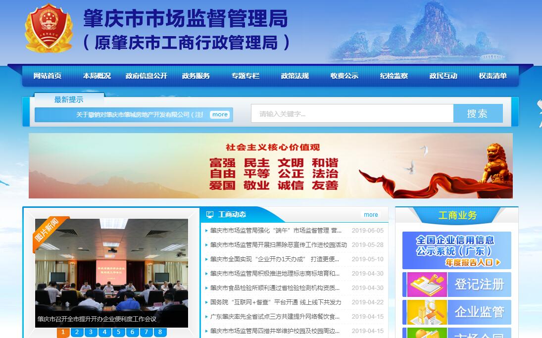 肇庆市市场监督管理局主要职责:(一)贯彻执行国家、省和市有关工商行政管理的方针政策和法律法规,拟订有关政策并组织实施,负责市场监督管理和行政执法有关工作。(二)负责市场主体登记的管理工作,推进工商注册制度便利化,实施“一照一码”登记管理;组织指导全市各类企业、个体工商户、农民专业合作社和从事经营活动的单位、个人以及外国(地区)企业常驻代表机构等市场主体的登记注册,组织实施全省统一标准规范的电子营业执照和全程电子化工商登记管理;研究分析并依法发布市场主体登记注册基础信息,为政府决策和社会公众提供信息服务。(三)组织指导对全市各类企业、个体工商户、农民专业合作社和从事经营活动的单位、个人以及外国(地区)企业常驻代表机构等市场主体及经营行为的监督管理,依法组织查处取缔无照经营行为。(四)承担市场主体信用分类监督管理,组织市场主体开展年度报告和信息公示工作,负责企业信用信息公示平台的管理和使用,组织开展企业公示信息抽查工作,为社会公众提供市场主体信用查询和信用预警等服务。(五)承担对流通领域市场行为的风险监测分析和市场交易风险防范,建立并实施重要商品及生产资料的风险评估指标体系、风险监测预警和跟踪制度、风险管理防控联动机制。(六)负责拟订便利营商的措施、办法并组织实施;拟订促进优化营商环境的具体措施、办法并组织实施;支持企业经营模式和产业转型升级,服务小微企业、个体工商户发展和转型升级,推动各类市场主体登记后持续健康发展;协助市非公有制经济组织党委开展有关工作,统筹全市个体私营企业党建工作。(七)负责依法规范和维护商品交易市场经营秩序工作,负责组织监督管理商品交易市场经营行为;负责监督管理和规范网络商品交易及有关服务行为,促进网络商品交易市场健康发展。(八)组织管理商标和特殊标志,依法保护商标专用权,查处商标侵权等违法行为,监督管理商标印制和商标代理,组织实施商标品牌战略。(九)指导广告业发展,负责广告活动的监督管理工作,承担公益广告的规划和有关管理,组织广告业统计工作,查处广告违法行为。(十)依法监督管理经纪人、经纪机构及经纪活动;依法组织实施合同行政监督管理,负责管理动产抵押登记,监督管理拍卖行为,依法查处合同欺诈等违法行为。(十一)根据授权,承担垄断协议、滥用市场支配地位、滥用行政权力排除限制竞争方面的反垄断执法工作(价格垄断行为除外);依法组织查处不正当竞争、走私贩私等经济违法行为。(十二)依法组织查处违法直销、传销案件,依法监督管理直销企业和直销员及其直销活动,协调打击传销联合行动。(十三)负责消费维权及社会监督体系建设工作。负责流通领域商品质量及有关服务监督管理,统筹管理和组织开展全市流通领域商品及有关服务抽查检验工作;指导消费者咨询、投诉、举报受理与处理工作,指导消费者权益保护社会网络体系建设,查处违反商品质量法规及商品消费和服务领域中侵害消费者合法权益的行为,依法保护消费者合法权益,促进市场交易环境和消费维权政社共治。(十四)统筹协调指导全市市场监管体系建设,负责市场监管信息平台的管理和使用,负责与行政执法部门的执法协作工作,做好与司法的衔接工作。(十五)指导全市工商行政管理业务工作,组织指导全市工商系统干部培训、素质教育等相关工作,指导全市工商系统规范化建设和全市工商部门行政效能、政风行风建设,统筹全市工商系统信息化建设相关工作。(十六)承办肇庆市人民政府和上级市场监督部门交办的其他事项。