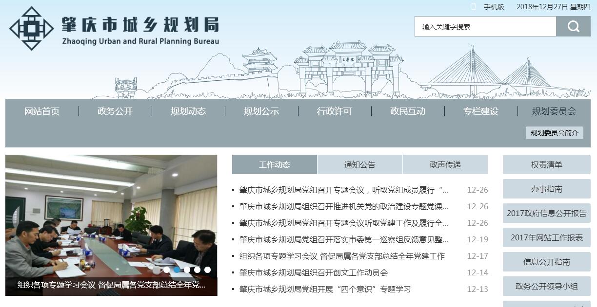 肇庆市城乡规划局主要职责:(一)贯彻执行国家、省、市有关城乡规划的各项方针、政策、法律、法规、规章;拟订我市城乡建设规划管理办法和制度,并负责组织实施。(二)负责组织编制肇庆市城市总体规划、分区规划、详细规划、城镇体系规划;组织编制、审批城市建设各专项规划。(三)指导各县(市)和肇庆高新区城乡规划的编制、实施和管理工作;指导、审查各县(市)人民政府所在地总体规划的编制并按规定程序上报;指导、审查各县(市)中心镇总体规划、控制性详细规划、修建性详细规划及其它专项规划的编制。(四)贯彻执行肇庆市城市总体规划,负责城区(端州区、鼎湖区、高要区)内各建设项目的用地及工程的规划管理工作:1.审查建设项目设计任务书和可行性报告。2.根据城市总体规划要求和建设项目的性质,进行建设项目的选址,核发《建设项目选址意见书》;核定建设项目征地范围蓝线图,核发《建设用地规划许可证》,核定建设项目的建筑基底红线。3.确定建设项目的规划建设技术要求,审定总平面规划布局。4.核定建筑性质、建筑外观和总面积,核发《建设工程规划许可证》。5.负责批后检查监督和建设工程规划验收。(五)负责规划和审理城市规划区内各项私房建设、农房建设及各项临时建设的规划管理工作;负责审批与城市景观相关的路牌及户外广告的选址、定位及体型、体量。(六)负责审定城区内小区详细规划设计、村镇规划设计和各项市政公用事业工程、地上地下管线建设的规划设计并参与验收。(七)负责(或会同各有关部门)检查、处理、纠正城市规划区内的一切违法、违章建设行为。(八)负责城区城建档案资料的行政管理及指导各县(市)城建档案工作。(九)负责城市规划区内城市测量、工程测量等城市建设规划专业测量管理工作;负责建立和管理城市规划地理信息工作。(十)参与论证、审查全市各重大建设工程项目规划,参与全市各重大建设工程项目规划建设方案会审。(十一)承办市委、市人民政府和上级业务主管部门交办的其他事项。