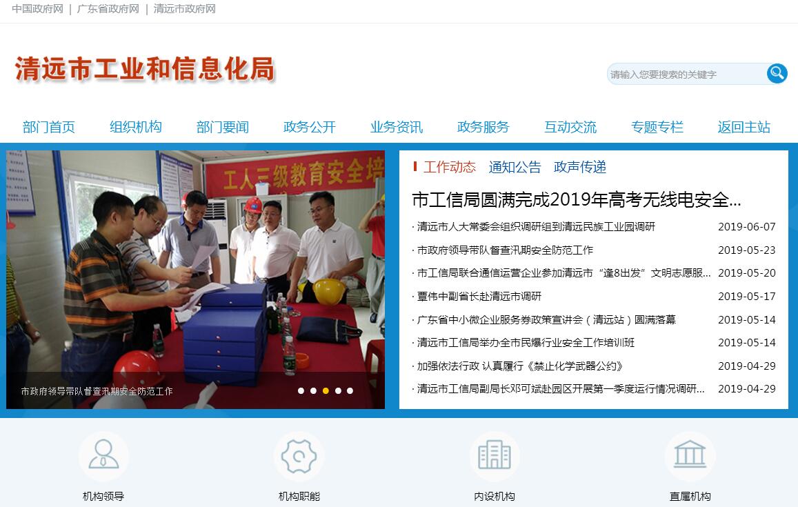 清远市工业和信息化局主要职责:(一)贯彻执行有关工业和信息化的法律、法规、规章,拟订工业、信息化领域的规范性文件。研究提出全市新型工业化发展战略,推进信息化和工业化融合发展,推进生产服务业与制造业融合发展,推进工业和信息化领域的军民融合发展。(二)拟订工业、信息化领域发展规划、计划和产业政策并组织实施,提出优化工业布局、结构的政策建议。组织实施相关产业技术规范和标准。(三)监测分析工业、信息化领域运行态势并做好相关信息发布,进行预测预警和信息引导,协调解决行业运行发展中的重大问题并提出政策建议。牵头负责企业情况综合工作。(四)指导工业、信息化领域的技术进步、技术创新、技术引进、消化吸收和再创新、重大技术装备国产化、重大技术装备研制工作,推进相关科研成果产业化。(五)执行有关固定资产投资政策,编制工业、信息化领域企业技术改造、技术创新等专项资金年度计划并组织实施,审核、上报和办理需经国家、省和市审批、核准的工业、信息化领域企业技术改造投资项目,提出促进工业、信息化领域企业技术改造投资的措施和意见,促进工业投资。负责归口的各项财政专项资金和经费的总体计划、实施管理、绩效评价等工作。(六)牵头落实省产业转移相关规划和政策措施。拟订工业园区中长期发展规划和政策措施并组织实施。承担工业园区的综合协调和提质增效工作,研究协调工业园区发展中的重大问题,提出政策建议。(七)拟订工业、信息化领域能源节约、循环经济、资源综合利用和清洁生产促进的专项规划及政策措施并组织实施。推进绿色制造。协调以节能降耗为主要内容的相关重大示范工程和新产品、新技术、新设备、新材料的推广应用。(八)推进国民经济和社会信息化工作,协调指导经济社会领域的信息化应用。推进新一代信息技术和互联网的普及应用。协调推进信息化基础设施建设。负责信息网络基础设施建设规划、管理的有关协调工作,协调通信管线、站点、公共通信网规划,推进服务信息网络的资源共享和互联互通。协助推进省及市重点信息化工程建设。(九)执行民用爆炸物品发展规划和政策措施。协助省工业和信息化厅实施民用爆炸物品生产环节建设项目、科技项目管理和产品质量监管及销售环节中的储存建设项目、科技项目管理和产品质量监管。协助省工业和信息化厅实施民用爆炸物品生产环节安全和销售环节中的储存安全的监督管理。(十)负责中小企业和民营经济发展的宏观指导和服务,综合协调有关部门拟订促进中小企业和民营经济发展的政策措施。协调解决中小企业和民营经济发展中的有关重大问题。促进中小企业与大企业融通发展。(十一)承担促进数字经济和大数据产业的发展工作。拟订促进数字经济和大数据产业发展的战略、规划和政策措施并组织实施。研究制定社会经济领域大数据收集、管理和开发应用的标准规范。推进社会经济领域大数据开发、应用和管理创新。(十二)配置和管理无线电频谱资源,依法监督管理无线电台(站)。负责无线电监测、检测、干扰查处工作,协调处理电磁干扰事宜,维护空中电波秩序,依法组织实施无线电管制。(十三)指导协调工业、信息化领域的人才队伍建设、对外交流与合作。(十四)按照“管行业必须管安全,管业务必须管安全,管生产经营必须管安全”的责任体系要求,依法负责本系统、领域的安全生产监督管理工作,指导工业和信息化领域加强质量管理和安全生产工作。(十五)完成市委、市政府以及省工业和信息化厅交办的其他任务。