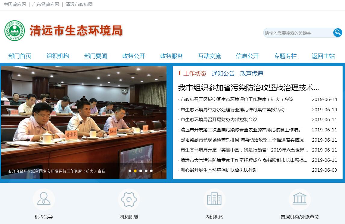 清远市生态环境局主要职责:一、贯彻执行国家和省有关环境保护的方针政策和法律法规及标准,监督实施环境保护法律法规、规章和标准,组织编制环境功能区划,拟订全市环境保护规划和计划,组织拟订并监督实施重点区域、流域污染防治规划和饮用水水源地环境保护规划,参与拟订市主体功能区规划。二、负责重大环境问题的统筹协调和监督管理。牵头协调重大环境污染事故、生态破坏事件的调查处理和重点区域、流域环境污染防治工作,指导协调全市重大突发环境事件的应急、预警工作,协调解决区域环境污染纠纷。三、承担落实全市污染减排目标责任。提出实施总量控制的指标,督查、督办、核查各地污染物减排任务的完成情况,牵头落实完成环境保护目标责任制、总量减排考核。四、承担从源头上预防、控制环境污染和环境破坏的责任。受市人民政府委托对重大经济和技术政策、发展规划以及重大经济开发计划进行环境影响评价,监督建设项目落实环境影响评价制度的执行,负责建设项目竣工环境保护验收。五、负责环境污染防治的监督管理。负责大气、水体、土壤、噪声、光、恶臭、固体废物、化学品以及机动车排气等污染的防治管理工作,会同有关部门监督管理饮用水水源地环境保护工作,组织指导城镇和农村的环境综合整治工作,牵头组织强制性清洁生产审核工作,负责环境监察和环境保护行政稽查,组织实施排污申报登记、排污许可证、重点污染源环境保护信用管理等各项环境管理制度。六、指导并监督管理排污费的征收管理和使用,监督管理超标准排污费的征收、管理和使用,会同有关部门管理市级环境保护资金。七、指导、协调、监督生态保护工作。会同有关部门拟订生态保护规划,组织评估生态环境质量状况,监督对生态环境有影响的自然资源开发利用活动、重要生态环境建设和生态破坏恢复工作;指导、协调、监督各种类型的自然保护区、风景名胜区、森林公园的环境保护工作;指导、协调全市农村生态环境保护和生态示范区建设;组织协调生物多样性保护。八、负责民用核与辐射环境安全的监督管理。协助国家、省监督管理核设施安全,参与民用核事故应急处理,负责辐射环境事故处理,监督管理民用核设施、核技术应用、电磁辐射、伴有放射性矿产资源开发利用中的污染防治,参与反生化、反核和辐射恐怖袭击工作。九、负责环境监测和发布环境状况公报、重大环境信息。组织对全市环境质量监测和污染源监督性监测,组织对环境质量状况进行调查评估、预测预警,负责环境统计,组织编报环境质量报告书,发布环境质量状况公报,组织建设和管理本市环境监测网和环境信息网。十、开展环境保护科技工作。组织环境保护重大科学研究和技术工程示范,参与指导和推动环境保护产业发展。十一、组织、指导环境保护宣传教育工作。制定并组织实施环境保护宣传教育纲要,开展生态文明建设和环境友好型社会建设的有关宣传教育工作,推动社会公众和社会组织参与环境保护。十二、承办市人民政府和省环境保护厅交办的其他事项。