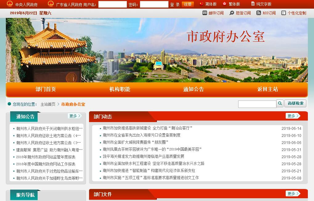 潮州市政府办公室主要职责:(一)负责市人民政府和市人民政府办公室的文电处理工作,草拟、审核、印发以市人民政府及市人民政府办公室名义发出的文件,负责市人民政府重大活动的组织安排。(二)起草《政府工作报告》。(三)根据市人民政府的工作部署和市人民政府领导同志的指示组织相关的调查研究,及时反映情况、提出建议。(四)收集整理政务信息,报送省人民政府、市人民政府领导参阅,协调新闻单位宣传报道市人民政府重大工作措施和重要政务活动。(五)检查、督促市人民政府各项决议、决定、重要工作部署和市人民政府领导同志重要批示的贯彻执行情况。(六)组织办理人大代表议案、建议和政协委员提案。(七)根据市人民政府领导指示组织协调有关部门关系,对有关问题提出处理意见。(八)协助市人民政府领导同志处理需由市人民政府处理的突发事件和重大事故,协调、督促相关应急管理工作。(九)负责市党政机关大院的安全保卫和会堂管理工作,承担市政府及办公室行政后勤事务工作。(十)负责市促进振兴发展工作。(十一)负责市人民政府驻外办事机构的管理;做好国内各地政府部门驻我市办事联络机构的管理工作;做好属下事业单位及授权管理单位的管理工作。(十二)贯彻执行国家和省有关法制工作的方针政策和法律法规;拟订年度政府规范性文件的工作计划,经批准后组织实施。(十三)起草或者组织起草、审核政府规范性文件。(十四)负责政府规范性文件的解释工作;承办涉及政府法制工作的请示事项。(十五)承办政府交办的重要行政措施发布前的合法性审查;承担各县、区人民政府和市政府各部门做出的重大行政处罚决定和制定的规范性文件的备案审查工作以及市政府规范性文件的上报备案工作。(十六)承担行政执法监督的职责。建立、完善和组织实施行政执法监督制度,审查行政执法队伍主体和人员的执法资格;负责对行政执法活动实行监督和指导,组织对行政执法责任制的落实情况进行考核评议;根据授权办理市政府实施的行政处罚;协调政府工作部门、县区政府之间在实施有关法律、法规、规章、规范性文件过程中产生的争议;督促指导全市依法行政工作。(十七)承办向市人民政府申请的行政复议、行政赔偿案件;代理政府行政应诉事务;监督、指导全市行政复议、行政应诉和行政赔偿工作。(十八)负责市人民政府法律顾问工作。承办市政府及市政府领导同志交办的法律顾问事务,代理市政府民事诉讼事务。(十九)指导开展政府法制工作和法制理论的研究及交流,开展对外法制业务交流。(二十)承办市委、市人民政府、省人民政府办公厅和省法制办公室交办的其他事项。