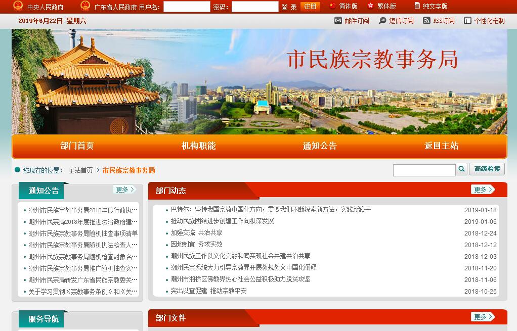 潮州市民族宗教事务局主要职责:(一)贯彻执行国家和省有关民族、宗教工作的方针政策和法律法规,起草我市民族、宗教工作的实施办法,并组织实施和督促检查。(二)负责协调推动有关部门履行民族、宗教工作相关职责,促进民族政策在经济发展和社会事业有关领域的实施,防范利用宗教进行非法、违法活动,抵御境外利用宗教进行渗透活动。(三)研究提出协调民族、宗教关系的工作建议,协调处理民族、宗教关系中的重大事项,参与协调涉及民族、宗教因素的社会维稳工作,保障少数民族和宗教界的合法权益,维护民族、宗教领域的和谐稳定。(四)负责组织指导民族、宗教政策和法律法规的宣传教育工作,组织协调涉及民族、宗教因素的重大活动,依法履行宗教事务管理职责,依法保护公民宗教信仰自由和正常的宗教活动。(五)指导宗教团体依法依章开展活动,支持宗教团体加强自身建设,帮助宗教团体办好宗教院校,积极推动宗教团体开展爱国主义、社会主义、拥护祖国统一和民族团结教育,办理宗教团体需要政府帮助解决和协调的有关事务。(六)依法管理民族、宗教方面的涉外事务,参与涉及民族宗教事务的对外宣传工作,协调民族、宗教工作的对外交流与合作,指导宗教团体开展对外友好交往活动。(七)协助有关部门做好少数民族干部的培养、教育和使用工作,帮助宗教团体做好宗教人士的培养教育和政治安排工作。(八)承办市委、市政府和上级主管部门交办的其他事项。
