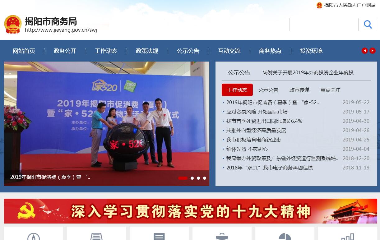 揭阳市商务局主要职责:(一)贯彻执行国家、省商务管理及口岸工作有关方针政策和法律法规;拟订有关政策、规划、计划、管理办法等,并组织实施。研究国内外贸易、现代流通方式的发展趋势并提出政策建议。(二)拟订全市商务和口岸发展战略、规划、计划并组织实施;拟订市场体系建设、内外贸易发展、投资的政策措施并组织实施,加快推进现代市场体系建设,推动商贸服务平台建设;推进内外贸融合发展;优化商贸流通产业布局和结构。(三)牵头拟订有关健全和规范城乡市场发展的政策;建立市场诚信公共服务平台,推动商务领域信用建设;推进农村市场体系建设,指导大宗产品批发市场规划和城市商业网点规划、商业体系建设;促进商贸流通体制改革,协调解决商贸流通中的重大问题;推进流通标准化。(四)负责整顿和规范市场经济秩序的相关协调工作;拟订并组织实施规范市场运行、流通秩序的政策措施;监测分析商务运行态势、商品供求,进行预测预警和信息引导;负责建立健全生活必需品市场供应应急管理机制;负责重要消费品储备的管理和市场调控工作。(五)拟订并组织实施会展、电子商务、商务服务等发展规划和政策措施;推进连锁经营、商业特许经营、物流配送等现代流通方式发展;促进贸易增长方式转变,指导和协调贸易促进体系建设,推动电子商务服务体系和平台建设;促进商贸中小企业发展,指导商品贸易结构调整;推动流通业品牌建设。(六)制定并组织流通业产业政策,提出优化产业布局、结构的政策建议并组织实施;负责流通行业发展工作,指导和管理再生资源回收相关工作;依法对拍卖、典当、租赁、汽车流通和旧货流通业等进行监督管理;组织实施进出口商品目录;组织实施重要工业品、原材料和重要农产品(除粮食、棉花外)进出口计划以及进出口商品配额、关税配额计划。(七)牵头拟订全市服务贸易发展计划,负责商贸服务业(含批发、零售、家政、餐饮、住宿业等)管理、发展相关工作;指导服务贸易领域的对外开放;会同有关部门制定促进服务出口和服务外包发展的规划、政策措施并组织实施;推动服务外包平台建设。(八)拟订并组织实施优化机电产品、高新技术产品进出口结构和对外技术贸易的政策措施;组织实施科技兴贸战略和国际品牌建设;负责监督协调机电产品国际招投标;推进进出口贸易标准化。(九)参与拟订本市招商引资、对外投资规划、计划并组织实施;承担重大项目对外招商和跟踪服务工作;负责协调和指导本市招商引资、投资促进工作;负责对外投资管理和服务工作;参与制定本市促进投资规划和改善投资环境的政策措施。(十)负责国内外经济合作和对外援助工作;拟订并组织实施有关经济合作的政策措施和管理办法;依法管理、监督和服务对外承包工程、对外劳务合作等对外经济合作业务;指导和监督检查本市承担的对外援助相关工作。(十一)指导全市外商投资工作,拟订外商投资政策和改革方案并组织实施,依法管理外商投资企业和项目有关事项,依法监督检查外商投资企业执行有关法律法规情况并协调解决有关重大问题;指导加工贸易工作,依法监督管理本市加工贸易进出口工作。(十二)负责有关开发区建设发展的规划计划的政策引导和协调、指导和管理工作;负责有关开发区情况汇总、评价工作;研究分析有关开发区建设中的重大问题。(十三)拟订全市商务交流计划并组织实施;负责全市性商务和口岸的重要外事活动;指导本系统外事和对外交流工作;推进海外经贸网络规划布局;负责粤港、粤澳及对台经贸工作;负责区域经贸合作、协作相关工作。(十四)负责口岸建设和对外开放规划并组织实施;综合协调和指导各级口岸管理机构的工作;负责电子口岸建设及口岸信息发布;参与协调口岸安全管理。(十五)承担组织协调反倾销、反补贴、保障措施及其他进出口公平贸易相关工作;综合协调本市有关世界贸易组织事务的具体工作;依法组织产业损害调查及其他贸易救济措施,指导协调国外对本市出口商品的反倾销、反补贴、保障措施的应诉工作;依法对经营者集中行为的调查及其他反垄断相关工作。(十六)承办市人民政府和省商务厅、省口岸主管部门交办的其他事项。