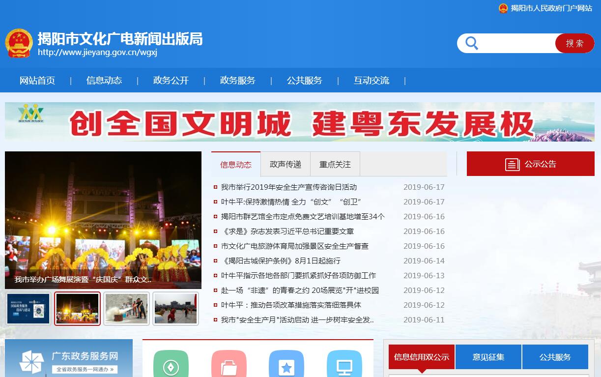 根据《中共揭阳市委、揭阳市人民政府关于印发〈揭阳市人民政府机构改革方案〉的通知》(揭委发〔2009〕13号),设立揭阳市文化广电新闻出版局(加挂揭阳市版权局牌子),为市人民政府工作部门。揭阳市文化广电新闻出版局主要职责如下:(一)贯彻执行中央和省有关文化艺术、广播电视、新闻出版事业的方针政策和法律法规,拟订各项事业发展规划和管理办法,并组织实施;指导文化体制改革;把握正确舆论导向。(二)负责专业文化、社会文化、基层文化建设的指导推进工作;管理文化艺术事业,指导艺术创作和生产,推进文化艺术领域的公共文化服务,引导公共文化产品生产,扶持代表性、示范性、实验性文化艺术品种,推动各门类艺术的发展;管理全市性重大文化活动。(三)拟订文化产业规划,指导、协调文化产业发展;规划、实施重点文化设施建设,管理市级公共文化设施,指导基层文化设施建设;按照有关法律法规的规定以及国家和省的统筹规划,对地方广播电视专用网进行具体规划和管理;起草广播电视和信息网络视听节目服务的规范性文件,拟订全市广播电视事业、产业发展规划并组织实施;指导监督广播电视覆盖网的建设和维护工作。(四)促进全市文化产业发展繁荣,协调指导动漫和网络游戏相关产业规划、产业基地、项目建设、会展交易和市场监管,对影视动漫和网络视听中的动漫节目和出版环节中的动漫进行监管,负责文艺类产品网上传播、游戏出版物的网上出版发行的前置审批工作,按分工管理网吧等上网服务营业场所,监管网络游戏服务。(五)组织协调文化遗产的管理和保护,组织实施非物质文化遗产保护和优秀地方文化的传承普及工作,指导、管理历史文化名城,承办省级和市级非物质文化遗产代表项目的申报与评审等工作;负责国级、省级、市级文物管理、保护和县级文物的指导、监管等有关工作。(六)管理文化市场,指导文化市场综合执法,对从事演艺活动、广播电影电视节目制作、出版活动的民办机构进行监管;指导和管理社会文化、图书馆、博物馆事业及电影发行放映工作;管理对外文化交流工作。(七)指导艺术教育工作,统筹规划文化艺术、文物博物、图书资料和艺术教育等方面的工作。(八)监督管理地方广播电视节目、卫星电视节目收录和通过信息网络向公众传播的视听节目及境外落地电视频道;负责安装和使用卫星广播电视地面设施的监督管理;负责有线广播电视站的设立和有线广播电视采用加解扰技术、电视台开办视频点播业务、广播电视台(站)年检的审核工作。(九)组织推进广播电影电视领域的公共服务,组织实施广播电影电视重大工程;指导、监管广播电影电视重点基础设施建设、广播电影电视节目传输、监测和安全播出;开展广播电影电视方面的对外交流与合作,监管境外广播电影电视节目的引进和播出;指导和推进全市广播电影电视领域的体制改革和机制创新;负责广播电影电视、信息网络视听节目服务机构和业务的监管并实施准入和退出管理。(十)监管出版活动,组织开展对非法出版物、违禁出版物的鉴定工作,组织查处严重违法违规出版物和出版活动,负责对新闻出版单位进行行业监管,实施准入和退出管理。(十一)监督管理印刷业,负责电子出版物的出版、复制管理工作;负责著作权管理工作,处理涉外著作权关系;负责新闻出版和著作权对外交流与合作的有关工作。(十二)负责监管书报刊的印刷、物资供应和图书发行;组织协调新闻出版业的科研工作;负责出版物内容监管,组织指导重要文件文献、重点出版物和中小学教科书的印制和发行,制定全市古籍整理出版规划并组织实施。(十三)负责对互联网、手机、数字多媒体等非纸质媒体出版行为的前置审批、审核和监管;负责新闻单位记者证的审核工作,负责报刊社驻揭记者站和通讯社驻揭分支机构的监管,组织查处重大新闻违法活动。(十四)负责著作权管理工作,组织查处有重大影响或跨区域的著作权侵权案件和涉外侵权案件;开展新闻出版和著作权方面的对外交流与合作。(十五)负责制订实施文化、广播电视、新闻出版管理队伍建设和人才培养规划,指导市级本系统行业学会、协会、研究会的工作。(十六)负责对揭阳广播电视台的监督管理。(十七)承办市人民政府和上级主管部门交办的其他事项。