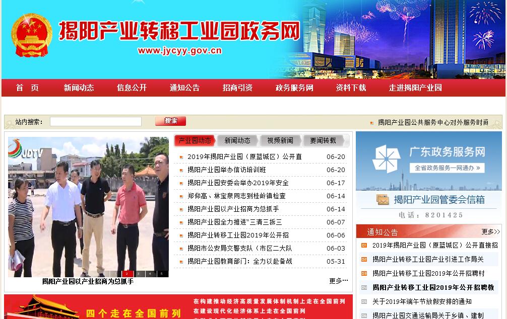 揭阳产业转移工业园,2016年12月14日成立,简称:揭阳产业园。2016年12月,揭阳市下发了《中共揭阳市委、揭阳市人民政府关于撤销揭阳市蓝城区管理委员会的通知》,撤销蓝城区管委会,其职责整合划入揭阳产业转移工业园管理委员会,简称揭阳产业园管委会。原蓝城区管委会代管的磐东街道、月城镇、桂岭镇、霖磐镇、白塔镇、龙尾镇调整由揭阳产业园管委会代管。其主要职责:(一)贯彻执行党的路线、方针、政策,执行区委、区管委会工作部署并组织有关实施工作。(二)负责处理区委、区管委日常的文字处理,处理各镇(街道)和区直各部门报送区委、区管委会及区党政办的文电,草拟、审核以区委、区管委会及区委办、区管委办公室名义发布的文件。(三)负责区委、区管委会重大活动会议和区领导参加的重要活动的组织、协调和安排工作,负责起草区委、区管委会主要领导重要讲话文稿。(四)根据区委、区管委会的工作部署,开展调研,收集信息,反映动态,提出建议。(五)负责区委、区管委会各项决议、决定和重要工作部署的贯彻落实和督促检查,负责区委、区管委会领导重要批示的转达、催办和落实,并将落实情况向区委、区管委会领导汇报。(六)协助区委、区管委领导处理突发事件和重要事故。(七)负责区委、区管委会的信访工作。(八)办理人大代表议案、建议和意见及政协委员的提案。(九)负责做好保密、档案、人民防空、应急管理等有关工作。(十)负责行政事务工作,为区委、区管委会领导服务。(十一)办理区委、区管委会领导交办的其他事项。