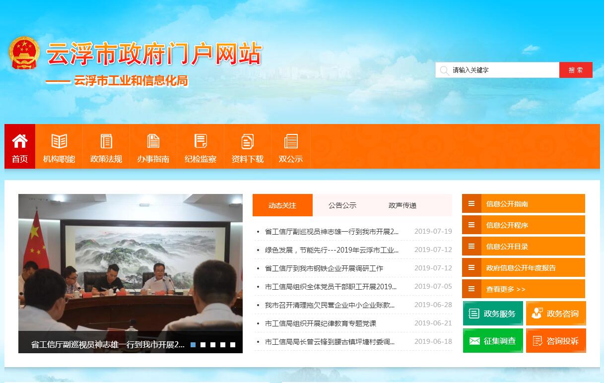 云浮市工业和信息化局主要职责:(一)贯彻落实国家、省关于工业和信息化领域的法律、法规、规章。拟订全市工业和信息化领域发展规划、计划和产业政策并组织实施。研究提出全市新型工业化、信息化发展战略和优化全市工业布局、调整工业结构、建设现代工业体系的政策建议。(二)监测分析全市工业和信息化领域运行态势,进行预测预警,并做好信息发布和信息引导。综合分析全市工业和信息化领域经济运行和产业发展中的重大问题,提出对策建议。牵头负责企业情况综合工作。(三)执行有关固定资产投资政策,促进工业投资。负责推进全市工业和信息化领域企业的技术改造和技术创新。指导全市工业和信息化领域的技术引进、消化吸收和再创新、重大技术装备国产化、重大技术装备研制和设备招标工作,推进相关科研成果产业化。指导工业和信息化领域加强质量管理工作。(四)负责指导全市装备工业、材料工业、消费品工业、电子信息工业、生产服务业等行业发展工作。拟订相关行业产业政策并组织实施推进生产服务业与制造业融合发展。推进工业设计、工业电子商务应用、工业品牌、工艺美术行业发展。承担工业领域淘汰落后产能相关工作。协调推进烟草工业生产和专营管理。(五)负责全市工业园区综合协调、提质发展、扩能增效工作。贯彻执行省产业转移、产业园区发展相关规划和政策措施。拟订全市工业园区发展规划和政策措施。指导全市优化园区布局、工业进园和产业集聚发展。协调解决全市工业园区发展的重大问题,提出工业园区发展政策建议。(六)负责全市工业节能与综合利用工作。拟订全市工业和信息化领域能源节约、循环经济、资源综合利用和清洁生产促进的专项规划及政策措施并组织实施。推进绿色制造。协调以节能降耗为主要内容的相关重大示范工程和新产品、新技术、新设备、新材料的推广应用。(七)负责统筹推进全市国民经济和社会信息化工作,协调指导经济社会领域的信息化工作。协调推进全市通信管线、站点、公共通信网络等信息基础设施建设。推进服务信息网络的资源共享和互联互通。推动新一代信息技术和互联网的普及应用。推进软件和信息服务产业发展。促进信息消费。(八)负责全市数字经济和大数据产业的发展工作。拟订促进数字经济和大数据产业发展的战略、规划和政策措施并组织实施。研究制定社会经济领域大数据收集、管理和开放应用的标准规范。推进社会经济领域大数据开放、应用和管理创新。(九)负责全市工业互联网建设和应用工作。拟订全市工业与互联网融合发展、工业互联网创新应用、新一代信息技术与制造业融合发展等政策措施、专项规划并组织实施,推进工业化和信息化融合发展。(十)负责全市民用爆炸物品生产销售环节安全的监督管理工作。拟订全市民用爆炸物品行业发展规划和政策措施,组织实施民用爆炸物品生产销售环节建设项目、科技项目管理和产品质量监管。(十一)配置和管理无线电频谱资源,依法监督管理无线电台(站)。组织无线电监测、检测及干扰查处工作,协调处理电磁干扰事宜,维护空中电波秩序。依法组织实施无线电管制。(十二)负责全市中小企业和民营经济发展的宏观指导和服务。综合协调有关部门拟订促进全市中小企业和民营经济发展的政策措施。协调解决全市中小企业和民营经济发展中的重大问题。促进中小企业与大企业融通发展。(十三)承担全市军民融合发展职责。协调推进我市军民融合发展重大工程、重大项目建设,提出我市军民融合发展重大事项、重大问题的处理意见。(十四)指导协调全市工业和信息化领域的人才队伍建设、对外交流和合作。(十五)完成市委、市政府以及省工业和信息化厅交办的其他任务。