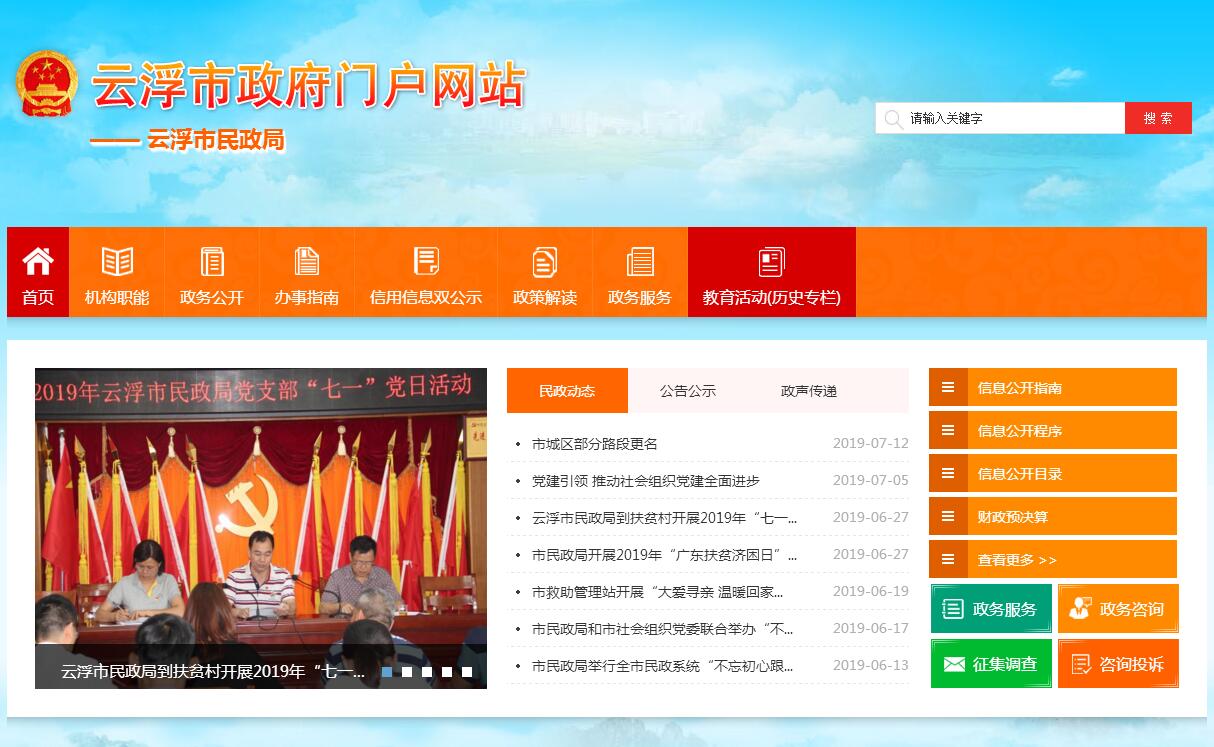 根据《中共云浮市委、云浮市人民政府关于印发云浮市人民政府机构改革方案的通知》(云发〔2009〕15号),设立云浮市民政局,为市人民政府工作部门。其主要职责:(一)贯彻执行国家和省有关民政工作的方针政策和法律法规,拟订民政事业发展规划和相关民政政策,并组织实施和监督检查。(二)负责退役士兵、复员干部和军队移交地方管理的离退休干部、退休士官和军队无军籍退休退职职工、伤残军人的接收安置及服务管理工作;承担追认烈士的审核报批、烈士褒扬工作;组织和指导拥军优属工作。(三)负责组织、协调城乡救灾工作,组织自然灾害救助应急体系建设,负责组织核查并统一发布灾情,管理、分配省级、市级救灾款物并监督使用,组织、指导救灾捐赠。(四)负责城乡居民最低生活保障、医疗救助、临时救助、流浪乞讨及生活无着人员救助工作,健全城乡社会救助体系。(五)负责全市镇(街)以上行政区域的设立、撤销、调整、更名、界线变更以及政府驻地迁移的审核报批工作,负责市际行政区域界线的勘定和管理,负责边界争议的调处事务,组织编制地名规划,负责地名命名、更名、销名审核工作,规范地名标志设置和管理工作。(六)提出加强和改进城乡基层政权建设的建议,推动基层民主政治建设,指导实施城乡基层群众自治组织建设和城乡社区建设,指导城乡社区服务体系建设。(七)负责社会福利机构的监督管理,促进慈善事业发展,组织指导社会捐助工作,指导老年人、孤儿和残疾人等特殊群体权益保障工作。(八)负责推进婚俗和殡葬改革,负责收养登记管理工作,指导婚姻、殡葬、收养、救助服务机构管理工作。(九)承担依法对社会团体、民办非企业单位进行登记管理和监察的责任。(十)会同有关部门按规定拟订社会工作发展规划、政策和职业规范,推进社会工作人才队伍建设和相关志愿者队伍建设。(十一)负责管理福利彩票销售工作,负责管理、使用、发放福利资金和民政事业费。(十二)承办市人民政府和省民政厅交办的其他事项。