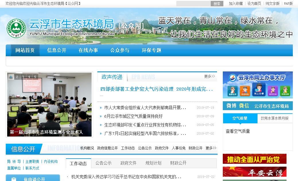 云浮市生态环境局贯彻落实党中央、省委和市委关于生态环境保护工作的方针政策和决策部署,在履行职责过程中坚持和加强党对生态环境保护工作的集中统一领导。其主要职责是:(一)负责建立健全生态环境制度。会同有关部门拟订生态环境政策、规划并组织实施,起草地方性法规、规章草案。会同有关部门编制并监督实施重点区域、流域、饮用水水源地生态环境规划和水功能区划,制定生态环境技术规范。(二)负责生态环境问题的统筹协调和监督管理。牵头协调环境污染事故和生态破坏事件的调查处理,指导协调全市突发生态环境事件的应急、预警工作,会同有关部门实施生态环境损害赔偿制度,协调解决辖区内环境污染纠纷,统筹协调重点区域、流域生态环境保护工作。(三)负责监督管理全市减排目标的落实。监督实施各类污染物排放总量控制、排污许可证制度,确定大气、水等纳污能力,提出实施总量控制的污染物名称和控制指标,监督检查各地污染物减排任务完成情况,实施生态环境保护目标责任制。(四)参与制定生态环境领域固定资产投资规模和方向的意见。组织申报中央、省生态环境专项资金。会同有关部门管理生态环境专项资金。配合有关部门做好生态环境专项资金使用的监督管理和绩效评价等工作。(五)负责环境污染防治的监督管理。制定大气、水、土壤、噪声、光、恶臭、固体废物、化学品、机动车等的污染防治管理制度并监督实施。会同有关部门监督管理饮用水水源地生态环境保护工作,组织指导城乡生态环境综合整治工作,监督指导农业面源污染治理工作。监督指导区域大气和水环境保护工作,组织实施区域大气和重点流域污染联防联控协作机制。(六)指导协调和监督生态保护修复工作。组织编制生态保护规划,监督对生态环境有影响的自然资源开发利用活动、重要生态环境建设和生态破坏恢复工作。组织制定各类自然保护地生态环境监管制度并监督执法。监督野生动植物保护、湿地生态环境保护等工作。指导协调和监督全市农村生态环境保护,监督生物技术环境安全,牵头生物物种(含遗传资源)工作,组织协调生物多样性保护工作,参与生态保护补偿工作。(七)负责民用核与辐射安全的监督管理。拟订有关政策、规划,牵头负责核安全工作协调机制有关工作,负责核应急和辐射环境事故应急协调处理工作,协助上级监督管理核设施安全,放射源安全,民用核设施、核技术应用、电磁辐射、伴有放射性矿产资源开发利用中的污染防治。(八)负责生态环境准入的监督管理。按管理权限审批或审査开发建设区域、规划、项目环境影响评价文件。拟订并组织实施生态环境准入清单。(九)负责污染源监测管理工作。制定污染源监测制度和规范并监督实施,组织实施污染源监督性监测、温室气体减排监测、执法监测、应急监测。组织建设和管理全市污染源监测网和生态环境信息网,统一发布全市生态环境综合性报告和重大生态环境信息。(十)负责应对气候变化工作。组织实施应对气候变化及温室气体减排规划和政策。承担碳排放交易管理等工作。协调开展应对气候变化对外合作和能力建设。(十一)配合上级开展生态环境保护监察。对接中央和省生态环境保护督察。(十二)统一负责生态环境监督执法。组织开展全市生态环境保护执法检查活动。查处生态环境违法问题。指导全市生态环境保护综合执法队伍建设和业务工作。(十三)组织指导和协调生态环境宣传教育工作。组织实施生态环境保护宣传教育纲要,推动社会组织和公众参与生态环境保护。(十四)开展生态环境科技工作。组织生态环境重大科学研究和技术工程示范,推动生态环境技术管理体系建设。参与指导推动循环经济和生态环保产业发展,开展生态环境合作交流。(十五)完成市委、市政府和省生态环境厅交办的其他任务。