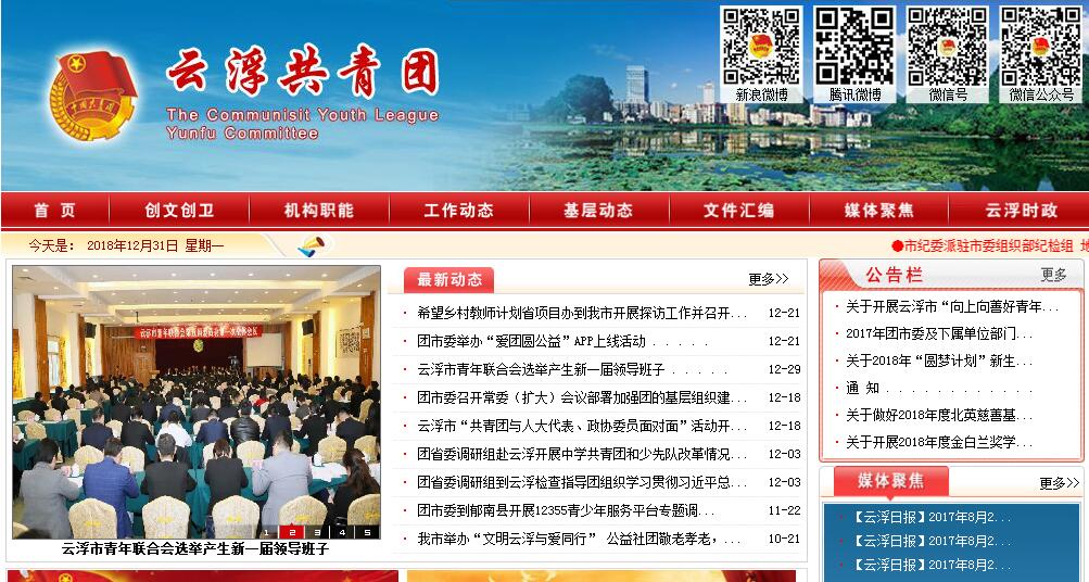 共青团云浮市委员会。中国共产主义青年团(简称共青团)是中国共产党领导的先进青年的群众组织,是广大青年在实践中学习中国特色社会主义和共产主义的学校,是中国共产党的助手和后备军。中国共产主义青年团原名中国社会主义青年团。1920年8月,中国共产党首先在上海组织了社会主义青年团。在此前后,全国各地在准备建党的同时组织了社会主义青年团。1921年7月,中国共产党成立。1922年5月,在党的直接领导下,中国社会主义青年团在广州召开第一次全国代表大会,成立了全国统一的组织。1925年1月,在团的第三次全国代表大会上,决定将中国社会主义青年团改名为中国共产主义青年团。1935年11月,为团结一切抗日青年,反对日本帝国主义的侵略,党决定将共青团组织改造成为民族解放性质的抗日救国的青年团体。抗日战争胜利后,为适应新形势和新任务的需要,党中央在1946年10月提议建立民主青年团。1949年元旦,党中央又作出建立中国新民主主义青年团的决议。1949年4月,召开新民主主义青年团第一次全国代表大会,宣告中国新民主主义青年团正式成立。1957年5月,中国新民主主义青年团召开第三次全国代表大会,决定把团的名称改为中国共产主义青年团。大会还决定把解放前后的中国社会主义青年团、共产主义青年团和新民主主义青年团的历次代表大会衔接起来。“文化大革命”10年,团的工作被迫处于停顿状态。1978年10月,中国共产主义青年团第十次全国代表大会召开。1982年12月,共青团第十一次全国代表大会召开。1988年5月,共青团第十二次全国代表大会召开。1993年5月,共青团第十三次全国代表大会召开。1998年6月,共青团第十四次全国代表大会召开。2003年7月,共青团第十五次全国代表大会召开。2008年6月,共青团第十六次全国代表大会召开,选举产生了现任团中央委员会。共青团的组织原则是民主集中制。团的全国领导机关是团的全国代表大会和它产生的中央委员会。团的全国代表大会每5年举行一次,由中央委员会召集,在特殊情况下,可以提前或延期举行。在全国代表大会闭会期间,中央委员会执行全国代表大会的决议,领导团的全部工作。团的中央委员会全体会议选举常务委员若干人,组成常务委员会。选举第一书记1人和书记若干人,组成书记处。中央委员会全体会议由常务委员会召集,每年至少举行一次。中央委员会闭会期间,由它选出的常务委员会和中央书记处行使职权,负责全团的日常工作。在全国31个省、自治区、直辖市和解放军、武警、全国铁道、全国民航、中直机关、国家机关、中央金融、中央企业等都有团的省级及下属团的地方领导机关和基层组织。截至2007年底,全国共有共青团员7543.9万人,基层团组织294.6万个,其中基层团委17.6万个,基层团工委2.3万个,团总支22.4万个,团支部252.3万个。全国共有10.7万个非公有制经济组织建立了团组织。专职团干部19.1万人。中国共产主义青年团在现阶段的基本任务是:坚定不移地贯彻党在社会主义初级阶段的基本路线,以经济建设为中心,坚持四项基本原则,坚持改革开放,在建设中国特色社会主义的伟大实践中,造就有理想、有道德、有文化、有纪律的接班人,努力为党输送新鲜血液,为国家培养青年建设人才,团结带领广大青年,自力更生,艰苦创业,积极推动社会主义物质文明、政治文明和精神文明建设,为全面建设小康社会、加快推进社会主义现代化贡献智慧和力量。