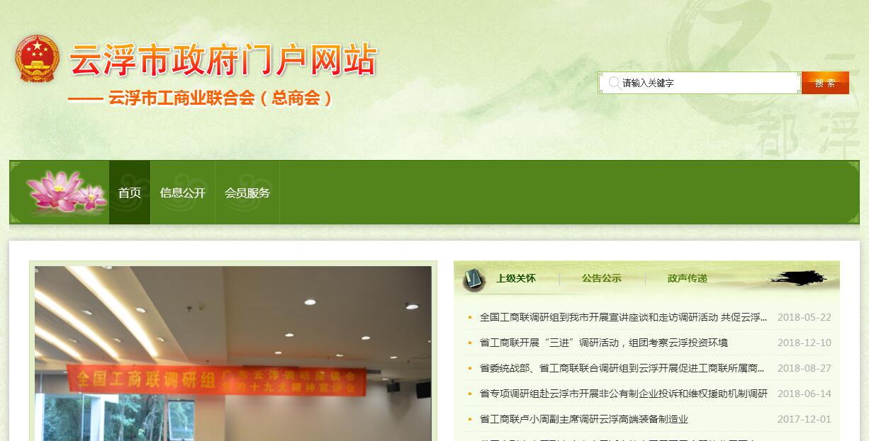 云浮市工商联又称市总商会,是在中国共产党领导下的具有统战性、经济性、民间性的人民团体和民间商会,是党和政府联系非公有制经济人士的桥梁和纽带,是政府管理非公有制经济的助手。(一)总体概况。云浮市工商联成立于1995年5月,指导云城区、云安区和罗定市、新兴县、郁南县等5个县(市、区)工商联(商会)。市工商联主要工作职责有六项:一是在非公有制经济人士思想政治工作中的引导作用;二是在非公有制经济人士参与政治生活和社会事务中的重要作用;三是在政府管理和服务非公有制经济中的助手作用;四是对经济类协会商会业务主管作用;五是在构建和谐劳动关系中的协调作用;六是在新经济组织和新社会组织党建工作中的指导作用。至2018年8月底,全市工商联会员共4148人,现有主席(兼市总商会会长)1人,副主席、秘书长的班子22人(兼职副主席20人);市总商会兼职副会长11人。市工商联(总商会)常委21人,执委54人;全市行业商(协会)共17家,全市工商联镇(街)商会33家。至2018年8月,我市各级工商联会员中,当选为省、市、县人大代表共64人,市、县人大常委会委员4人;当选为省、市、县政协委员(含常委、副主席)共210人,还有部分会员被有关政府部门聘为行风评议员、监督员等。截至2018年8月底,我市非公有制经济体共有92585个,占全市所有经济体的96.1%。2017年,全市民营经济增加值594.75亿元,占全市GDP的70.8%;2018年上半年,全市民营经济增加值243.68亿元,占全市GDP的69.8%。(二)机关情况。云浮市工商业联合会机关内设办公室、会员部两个科室,办公地址设在云城区解放中路38号四楼(部分)、五楼(部分)。云浮市民营企业投诉中心是市工商联所属科级事业单位,成立于2004年2月,主要职责为:受理民营企业对政府职能部门或相关管理部门的投诉,负责对受理投诉组织调查、提出处理意见以及回复工作,为民营企业提供诉讼和非诉业务服务等。