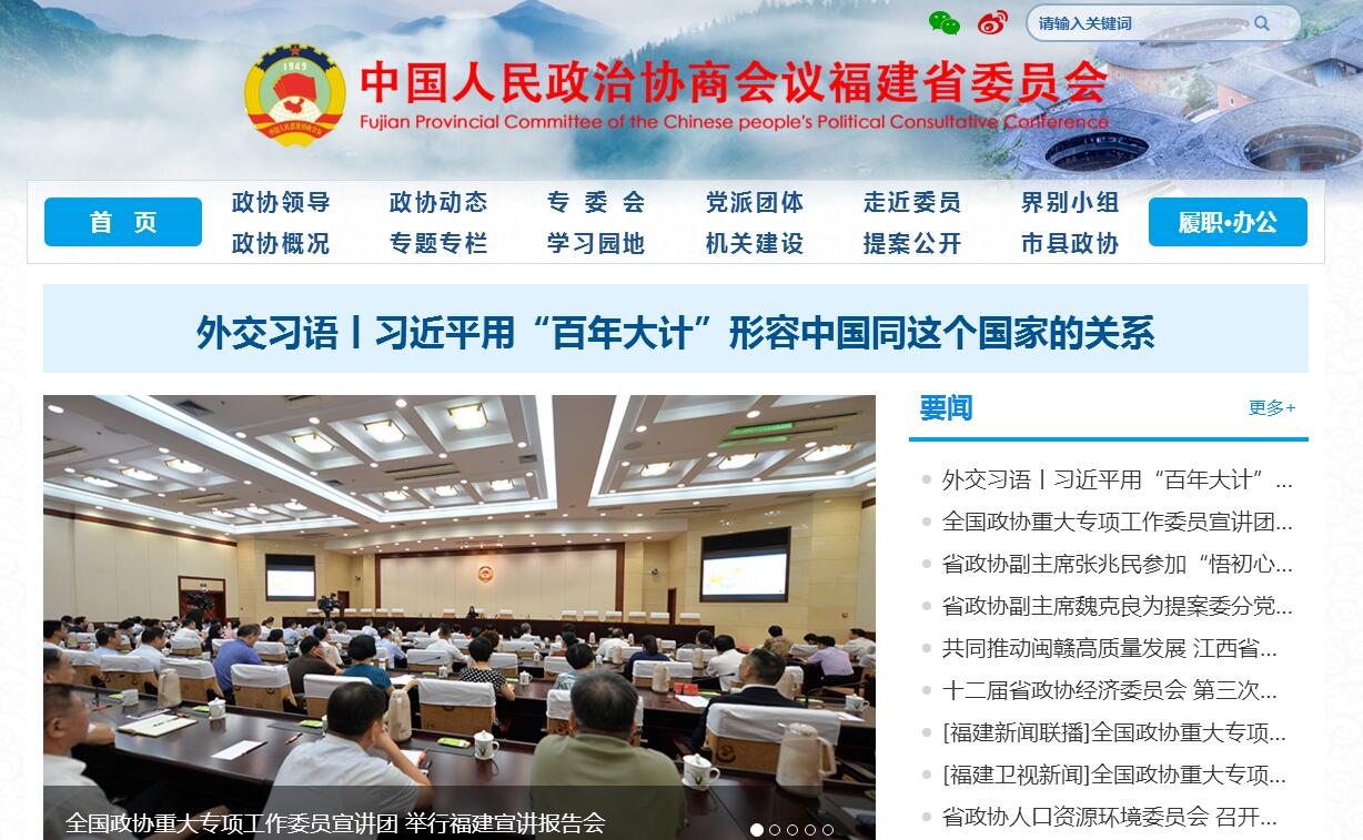 中国人民政治协商会议福建省委员会。中国人民在长期的革命、建设、改革进程中,结成了由中国共产党领导的、以工农联盟为基础的,有各民主党派、无党派人士、人民团体、少数民族人士和各界爱国人士参加的,由全体社会主义劳动者、社会主义事业的建设者、拥护社会主义的爱国者、拥护祖国统一和致力于中华民族伟大复兴的爱国者组成的,包括香港特别行政区同胞、澳门特别行政区同胞、台湾同胞和海外侨胞在内的最广泛的爱国统一战线。中华人民共和国宪法规定:中国共产党领导的多党合作和政治协商制度将长期存在和发展。中国人民政治协商会议是中国人民爱国统一战线的组织,是中国共产党领导的多党合作和政治协商的重要机构,是我国政治生活中发扬社会主义民主的重要形式,是国家治理体系的重要组成部分,是具有中国特色的制度安排。团结和民主是中国人民政治协商会议的两大主题。一九四九年九月,中国人民政治协商会议第一届全体会议代行全国人民代表大会的职权,代表全国人民的意志,宣告中华人民共和国的成立,发挥了重要的历史作用。一九五四年第一届全国人民代表大会召开后,中国人民政治协商会议继续在国家的政治生活和社会生活以及对外友好活动中进行了许多工作,作出了重要的贡献。一九七八年十二月中国共产党十一届三中全会以来,在拨乱反正、巩固和发展安定团结的政治局面,实现国家工作中心向经济建设转移,推进改革开放和社会主义现代化建设,争取实现包括台湾在内的祖国统一,反对霸权主义、维护世界和平的斗争中,中国人民政治协商会议进一步发挥了重要作用。中国共产党领导的多党合作和政治协商制度是我国的一项基本政治制度,是具有中国特色的社会主义政党制度。中国人民政治协商会议是实行中国共产党领导的多党合作和政治协商制度的重要政治形式和组织形式。中国人民政治协商会议根据中国共产党同各民主党派和无党派人士长期共存、互相监督、肝胆相照、荣辱与共的方针,促进参加中国人民政治协商会议的各党派、无党派人士的团结合作,充分体现和发挥我国社会主义新型政党制度的特点和优势。协商民主是我国社会主义民主政治的特有形式和独特优势。中国人民政治协商会议是社会主义协商民主的重要渠道和专门协商机构,要聚焦国家中心任务,把协商民主贯穿履行职能全过程,完善协商议政内容和形式,着力增进共识、促进团结,在推动协商民主广泛多层制度化发展、推进国家治理体系和治理能力现代化中发挥不可替代的作用。