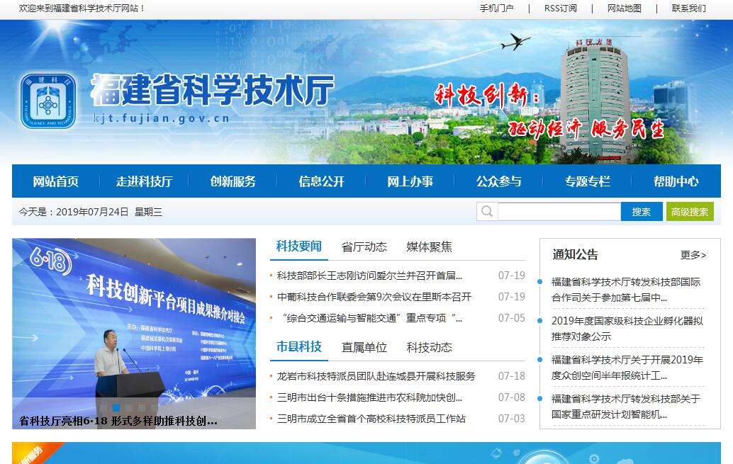 福建省科学技术厅主要职责:(一)贯彻执行国家有关科学技术发展的法律法规和政策;起草并组织实施有关科技工作的地方性法规、规章和政策。(二)编制全省中长期科技发展规划和年度计划并组织实施,提出全省科技发展重大布局和优先领域,组织实施基础研究、应用研究、开发研究、软科学研究等科技计划,负责统筹协调基础研究、前沿技术研究、重大社会公益性技术研究及关键技术、共性技术研究,牵头组织经济社会发展重要领域的关键技术攻关。(三)组织全省科技重大专项的方案论证、综合平衡、评估验收和拟订相关配套政策,对科技重大专项实施中的重大问题提出意见和建议。(四)负责推进全省科技创新体系建设,会同有关部门编制全省创新体系建设规划,拟订促进知识创新、技术创新建设的政策措施并组织实施。拟订科研条件保障规划和相关政策并组织实施,推进科技基础条件平台、科研基地、重点产业创新平台与创新基地建设和科技资源共享。(五)承担福厦泉国家自主创新示范区领导小组办公室日常工作,组织拟订示范区建设发展规划和政策措施并推动落实,会同有关部门统筹管理示范区建设专项资金,以及专项资金省级经费的使用管理。(六)拟订全省政策引导类科技计划并组织实施;会同有关部门拟订全省高新技术发展与产业化政策,指导高新技术产业化及应用技术的开发与推广;指导省级高新技术产业开发区和科技园区建设。(七)拟订全省科技促进农村和社会发展的相关政策和措施并组织实施,促进以改善民生为重点的农村建设和社会建设。(八)拟订科技成果管理政策并组织实施,指导科技成果转化工作;会同有关部门拟订全省产学研结合的相关政策,组织相关重大科技成果应用示范,推动企业自主创新能力建设。(九)提出科技体制改革的政策和措施建议,牵头组织推进科技体制改革工作,审核相关科研机构的组建和调整,优化科研机构布局。(十)负责本部门预算中的科学技术经费预决算及经费使用的监督管理,会同有关部门提出科技资源合理配置的重大政策和措施建议,优化科技资源配置。(十一)负责省科学技术奖评审的组织工作;会同有关部门拟订全省科技人才队伍建设规划,提出相关政策建议。(十二)拟订全省科普规划和政策,指导全省科普工作;拟订促进技术市场、科技中介组织发展政策;拟订科技保密管理办法;负责相关科技评估、科技统计及与科技相关的知识产权保护等工作;推进民营科技工作;承担福建省国防动员委员会科技动员办公室的具体工作。(十三)组织拟订对外科技合作与交流的政策措施,负责国际及港澳台地区的科技合作与交流,组织实施政府间及有关国际组织间的科技合作项目;负责全省有关科技外事工作。(十四)承办省委、省政府交办的其他事项。
