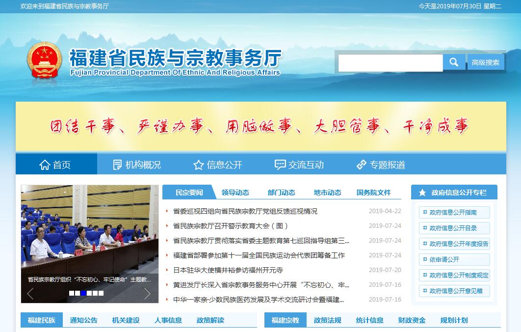福建省民族与宗教事务厅主要职责:(一)贯彻执行党和国家有关民族、宗教工作的法律法规和方针政策,组织民族、宗教政策理论和民族、宗教工作重大问题和难点、热点问题的调查研究,提出有关政策建议。(二)起草民族、宗教地方性法规、规章和政策,组织、指导民族、宗教政策和法律法规规章的宣传教育工作,负责对各级政府民族、宗教工作的业务指导;组织实施和检查监督民族、宗教法律法规规章和政策的贯彻执行,协调处理民族关系中的重大事项,促进民族和睦、宗教和谐,保障和维护少数民族、宗教界合法权益。(三)负责协调推动有关部门履行民族工作相关职责,协调开展民族团结进步宣传教育活动,协调指导做好城市民族工作,研究提出协调民族关系的工作建议,促进各民族共同团结奋斗、共同繁荣发展。(四)研究分析少数民族和民族地区经济社会发展方面的问题并提出政策措施建议,协调、配合有关部门处理相关事宜,承担省民族工作协调委员会的日常工作。(五)参与起草少数民族事业发展等专项规划,监督检查实施情况;参与起草少数民族和民族地区经济社会相关领域的发展规划,建立和完善少数民族事业发展综合评价监测体系,推进民族事务服务体系建设和民族、宗教事务信息化建设。(六)依法管理宗教事务,依法保护公民宗教信仰自由和正常的宗教活动。指导各级政府宗教事务部门依法履行职能、处理宗教事务重大事件,防范利用宗教进行的非法、违法活动,抵御境外利用宗教进行的渗透活动,指导和帮助宗教界开展对外及对港澳台地区的宗教交往活动。(七)指导宗教团体依法依章开展活动,负责监督、检查、指导宗教院校,引导宗教界开展与社会主义社会相适应的各项活动,协助宗教团体办理有关事务。(八)依法管理民间信仰活动及场所,对涉及民间信仰的重大问题进行调研并提出建议,协助基层政府及时处理民间信仰方面的重大问题,指导基层民族宗教事务部门做好民间信仰活动的管理工作。(九)负责联系少数民族干部和宗教界人士,协助有关部门做好少数民族干部的培养、教育和使用工作。(十)承办省委、省政府交办的其他事项。