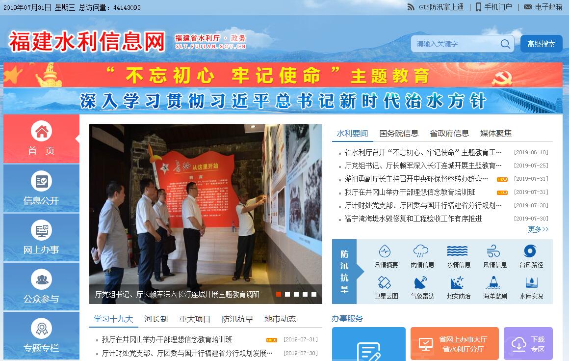 福建省水利厅主要职责:统一管理全省水资源(含空中水、地表水、地下水)。组织拟定全省和跨市(地)水中长期供求计划、水量分配方案并监督实施;组织有关国民经济总体规划、城市规划及重大建设项目的水资源和防洪的论证工作;组织实施取水许可制度和水资源费征收制度;发布全省水资源公报;负责管理全省水文工作。拟定节约用水政策,编制节约用水规划,制定有关标准,组织、指导和监督全省节约用水工作。按照国家和省有关资源与环境保护的法律、法规和标准,拟定水资源保护规划;组织水功能区的划分和向饮水区等水域排污的控制;监测江河湖库的水量、水质,审定水域纳污能力;提出限制排污总量的意见。组织、指导水政监察和水行政执法;协调并仲裁部门间和市(地)间的水事纠纷。拟定水利行业的经济调节措施;对水利资金的使用进行宏观调节;指导水利行业的供水、水电及多种经营工作;研究提出有关水利的价格、税收、信贷、财务等经济调节意见。编制、审查综合利用的大中型水利工程的项目建议书、可行性研究报告和初步设计文件,并按国家规定的基本建设程序办理审批手续;组织重大水利科学研究和技术推广;组织实施水利行业技术质量标准和水利工程的规程、规范并监督实施。组织、指导全省水利设施、水域及其岸线的管理与保护;组织指导主要江河、河口的治理和开发,负责海岸滩涂的围垦工作和海堤建设与管理工作;办理跨省河流协调事务;在职责范围内对全省水利建设工程进行管理。组织建设、指导和管理具有控制性的或跨市(地)的重要水利工程;组织、指导水库、电站大坝的安全监管。指导农村水利工作;组织协调农田水利基本建设,指导乡镇供水和农村节水工作。组织全省水土保持工作。研究制定水土保持的工程措施规划,组织水土流失的监测和综合防治。指导全省水利队伍的建设;负责全省水利方面的科技和外经、外事工作。指导全省水利行业的水电工作,组织协调农村水电电气化工作。承担福建省人民政府防汛抗旱指挥部的日常工作,组织、协调、监督、指导全省防洪工作,对主要江河和重要水利水电工程实施防汛抗旱调度。承办省政府交办的其他事项。