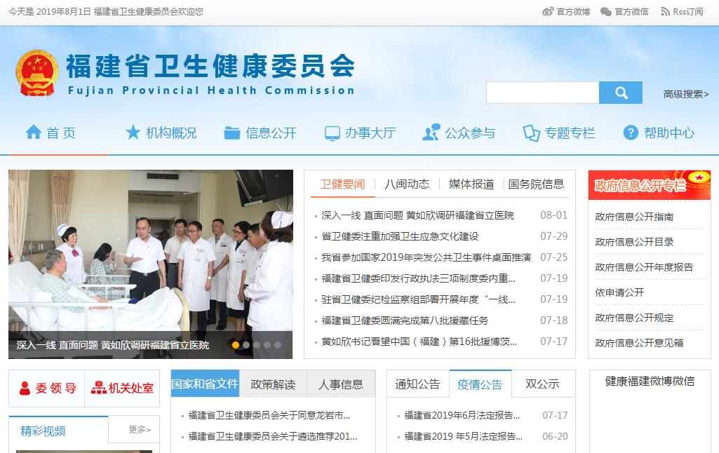 福建省卫生健康委员会贯彻落实党中央及省委关于卫生健康工作的方针政策和决策部署,在履行职责过程中坚持和加强党对卫生健康工作的集中统一领导。其主要职责是:(一)贯彻执行国家有关卫生健康和中医药的法律法规和方针政策,起草卫生健康和中医药事业发展的地方性法规、政府规章和政策规划,并负责组织实施。统筹规划全省卫生健康资源配置,指导区域卫生健康规划的编制和实施。制定并组织实施推进卫生健康基本公共服务均等化、普惠化、便捷化和公共资源向基层延伸等政策措施。(二)协调推进我省深化医药卫生体制改革,研究提出深化医药卫生体制改革政策、措施的建议。组织深化我省公立医院综合改革,探索管办分开的有效形式,健全现代医院管理制度,制定并组织实施推动卫生健康公共服务提供主体多元化、提供方式多样化的政策措施,提出医疗服务和药品价格政策的建议。承担省深化医药卫生体制改革领导小组日常工作。(三)负责拟订并组织落实疾病预防控制规划、免疫规划以及严重危害人民健康公共卫生问题的干预措施。负责卫生应急工作,组织指导突发公共卫生事件预防控制和各类突发公共事件的医疗卫生救援。承担省爱国卫生运动委员会日常工作。(四)贯彻落实国家应对人口老龄化政策,组织拟订并协调落实相关政策措施,负责推进老年健康服务体系建设和医养结合工作。承担省老龄工作委员会日常工作。(五)组织实施国家药物政策和国家基本药物制度,开展药品使用监测、临床综合评价和短缺药品预警。组织开展食品安全风险监测评估,依法制修订食品安全地方标准。(六)负责拟订和指导落实职责范围内的职业卫生、放射卫生、环境卫生、学校卫生、公共场所卫生、饮用水卫生等公共卫生监管政策措施,组织开展相关监测、调查、评估。负责传染病防治监督,健全卫生健康综合监督体系。协调开展省级控烟履约工作。(七)负责医疗机构、医疗服务行业监督管理。拟订并组织实施医疗机构及其医疗服务、医疗技术、医疗质量、医疗安全以及采供血机构管理的政策。组织实施全省医疗机构准入和评审评价工作,会同有关部门组织实施卫生健康专业技术人员准入、资格标准。组织实施医疗服务规范、标准和卫生健康专业技术人员执业规则、服务规范,建立医疗服务评价和监督管理体系。依法规范医疗服务市场。指导平安医院建设。(八)组织拟定中医药发展规划和相关政策措施,健全中医药服务体系,扶持和促进中医药事业发展,推进中医药传承和创新,统筹协调中西医发展。牵头会同有关部门开展野生中药材资源保护。(九)负责计划生育管理和服务工作,开展人口监测预警,研究提出人口与家庭发展相关政策建议,完善计划生育政策。(十)负责拟订并组织实施基层医疗卫生、妇幼健康发展规划和政策措施。负责妇幼保健的综合管理和监督,组织指导基层医疗卫生、妇幼健康服务体系和全科医生队伍建设。(十一)拟订并指导实施卫生健康人才发展规划和政策,指导卫生健康人才队伍建设。加强全科医生等急需紧缺专业 人才培养,完善并指导实施住院医师和专科医师规范化培训 制度。(十二)组织拟订卫生健康科技发展规划,推进卫生健康科技创新发展。组织实施卫生健康相关科研项目。参与拟订医学教育发展规划,协同指导院校医学教育,组织实施毕业后医学教育和继续医学教育。(十三)监督检查卫生健康相关法律法规、政策措施的落实,指导全省卫生健康综合监督执法体系建设,指导规范执法行为。(十四)负责卫生健康宣传、健康教育、健康促进等工作。按规定组织实施卫生健康工作领域国际交流合作与援外工作,开展与港澳台侨的交流与合作。统筹协调卫生健康对口支援工作。(十五)承担省保健委员会的日常工作,负责省保健委员会确定的保健对象的医疗保健工作,按照规定管理省直部门有关干部的医疗保健工作。负责省级以上重要会议与重大活动的医疗卫生保障工作。(十六)按有关规定承担安全生产方面相关职责。(十七)完成省委和省政府交办的其他任务。