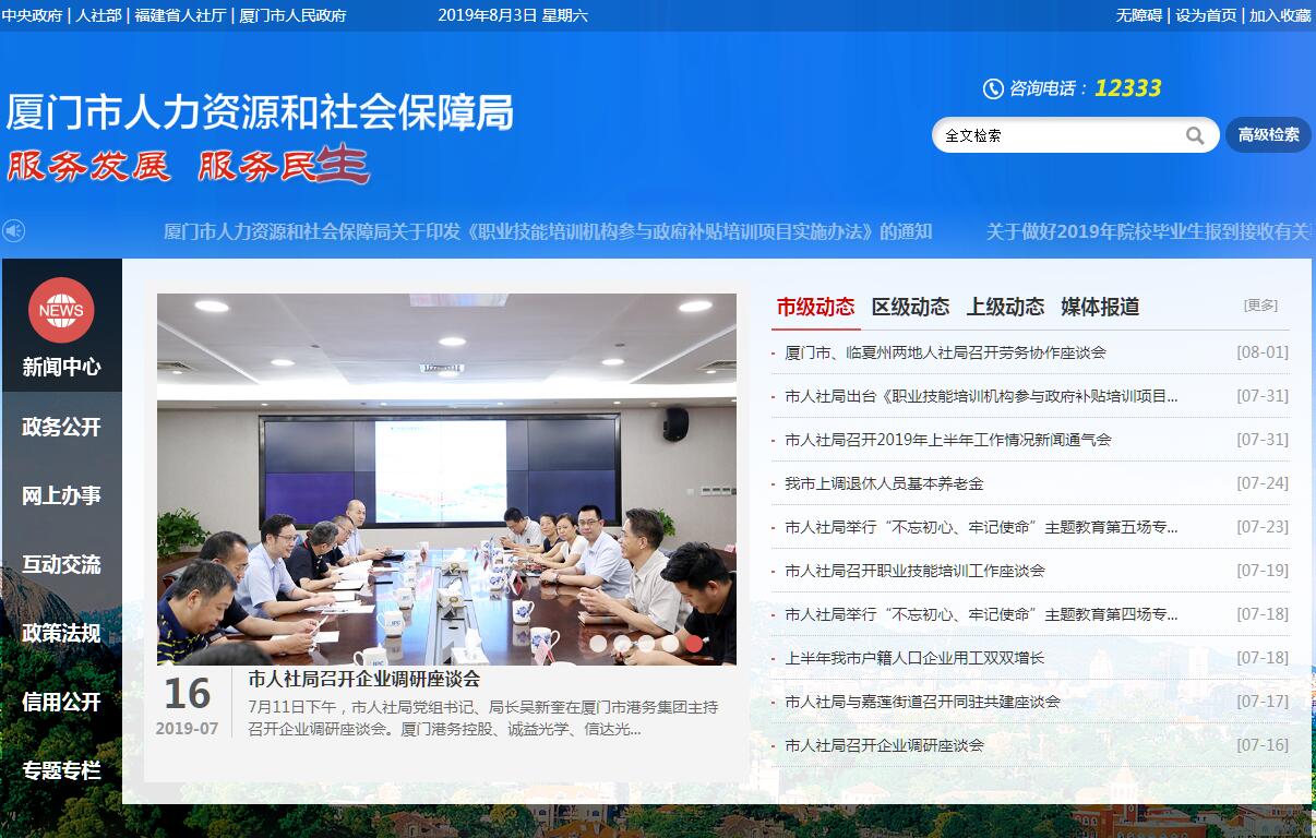厦门市人力资源和社会保障局主要职责:(一)贯彻执行国家人力资源、社会保障工作和公务员管理的法律、法规、规章和政策;研究起草我市人力资源和社会保障地方性法规、规章草案,拟订全市人力资源和社会保障事业发展规划、计划、政策,并组织实施和监督检查;拟订事业单位工作人员参照公务员法管理和聘任制公务员管理的具体办法,并组织实施和监督检查。(二)拟订全市人力资源市场发展规划和人力资源流动政策,建立统一规范的人力资源市场,促进人力资源合理流动和有效配置。(三)综合管理政府人才工作,负责全市人才(含外国专家、海外人才智力)引进、开发和服务工作,负责专业技术人才队伍和高技能人才队伍建设,构建人才服务体系。(四)负责促进就业工作,拟订统筹城乡的就业发展规划和政策,完善公共就业服务体系和就业援助制度;完善职业技能资格制度,统筹建立面向城乡劳动者的职业技能培训制度;牵头拟订大中专毕业生就业政策、扶持创业政策并会同有关部门组织实施;负责国(境)外人员在厦就业的管理工作。(五)统筹建立覆盖城乡的社会保障体系,拟订城乡社会保险及其补充保险政策、标准,贯彻落实社会保险关系转移接续办法;会同有关部门拟订社会保险及其补充保险基金管理和监督制度并组织实施,组织编制全市社会保险基金预决算草案,参与拟订社会保险基金投资营运政策。(六)负责全市就业、失业、社会保险基金预测预警和信息引导,实施预防、调节和控制,保持就业形势稳定和社会保险基金总体收支平衡;拟订就业专项资金使用、管理和监督制度,对执行情况实施监督检查。(七)会同有关部门拟订机关、事业单位人员工资收入分配政策并组织实施,建立机关企事业单位人员工资正常增长和支付保障机制,拟订机关企事业单位人员福利和离退休政策。(八)拟订事业单位分类管理、人员管理政策,组织实施事业单位人事制度改革,综合管理职称工作,组织实施博士后管理制度。(九)会同有关部门拟订军队转业干部安置政策和安置计划并组织实施,组织拟订部分企业军队转业干部解困和稳定政策,负责自主择业军队转业干部的管理服务工作,拟订军队转业干部教育培训规划。(十)会同有关部门拟订农民工工作综合性政策和规划,负责推动农民工相关政策的落实,协调解决重点难点问题,维护农民工合法权益。(十一)拟订劳动关系政策,完善劳动关系协调机制,监督落实消除非法使用童工政策和女工、未成年工的特殊劳动保护政策;组织实施劳动、人事争议调解仲裁制度;组织实施劳动保障监察,协调开展劳动者维权工作,依法查处和督办重大案件。(十二)组织实施公务员行为规范、职业道德建设和能力建设政策,会同有关部门拟订公务员职位分类标准和管理办法的实施细则;依法对公务员实施监督;负责公务员信息统计管理工作。(十三)负责政府系统公务员综合管理,拟订有关人员调配政策和特殊人员安置政策;完善公务员考试录用制度,负责组织政府公务员、参照公务员法管理事业单位工作人员的考试录用工作;完善公务员考核制度,拟订公务员培训规划、计划和标准,负责组织市级机关公务员培训。(十四)完善公务员申诉控告制度和聘任制公务员人事争议仲裁制度,保障公务员合法权益;拟订公务员奖惩政策并组织实施,负责政府奖励、表彰工作;承办市政府管理的领导人员的行政任免手续有关事宜。(十五)承办市委、市政府交办的其他事项。