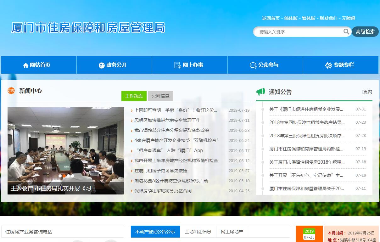 厦门市住房保障和房屋管理局,根据《中共福建省委办公厅、福建省人民政府办公厅关于印发 <厦门市机构改革方案>的通知》(闽委办发 〔2018〕40 号)和《中共厦门市委办公厅、厦门市人民政府办公厅关于印发<厦门市市级机构改革实施方案>的通知》(厦委办发〔2019〕4号),厦门市住房保障和房屋管理局(以下简称市住房保障和房屋管理局)是市人民政府工作部门,为副厅级。其主要职责是:(一)贯彻执行国家、省、市有关住房保障和房屋管理的法律、法规、规章和政策,起草并组织实施有关住房保障和房屋管理的地方性法规、规章和政策。(二)根据全市国民经济和社会发展总体规划,组织拟订并实施住房保障、房屋管理和房地产开发发展规划,编制中长期计划和年度计划并组织实施。(三)负责全市保障性住房的配租配售管理,负责安置房的配售管理。负责市本级保障性住房、安置房的资产管 理。负责保障性住房使用情况的监督管理。(四)负责全市房地产市场监督管理。统筹协调房地产市场调控工作,会同有关部门拟订房地产市场调控政策并监督实施。负责房地产市场信息管理、监测分析和发布,负责发布房地产市场指导价。(五)负责全市房地产行业管理。提出房地产业发展规划和产业政策,并组织实施。负责全市房地产开发经营和中介行业监督管理工作,负责房地产开发企业和从业人员的资质资格管理,对房地产开发项目进行跟踪监督,负责房地产经纪、估价等中介机构备案和从业人员管理。(六)负责全市房屋交易管理。拟订商品房预 (销)售、房屋产权交易、租赁、抵押、房地产估价与经纪管理的规章制度并监督执行。负责房屋面积管理。负责全市商品房预(销)售许可,负责房屋交易合同备案及交易资金的监管。协助征收有关房地产税费。(七)负责房屋租赁管理。负责培育和发展住房租赁市场,负责房屋租赁登记备案,负责住房租赁市场的管理和相关协调工作。(八)负责推进住房制度改革。负责研究、编制、组织实施住房制度改革方案和配套政策,负责廉租住房(公房)的管理。(九)负责全市住房公积金等住房资金监督管理。会同有关部门研究拟订住房公积金政策、发展规划并组织实施,制定住房公积金缴存、使用、管理和监督制度,监督全市住房公积金和其他住房资金的管理、使用和安全。(十)负责房屋安全的监督管理。负责协调组织房屋安全管理,组织编制全市危房改造、房屋修缮的规划和计划, 并组织协调实施。负责监督管理房屋安全鉴定机构,指导房 屋安全鉴定、白蚁防治。负责直管公房修缮管理。(十一)负责全市公房、侨房、代管房、信托房的管理。拟订有关公房出售、出租价格和租金标准,征收直管公房租 金,监督租赁合同的执行。负责落实侨房退还、代管房、信 托房的退管及清退安置。(十二)负责全市住房保障、房地产开发、房地产市场和房屋管理的行政执法,协调处理各类投诉和纠纷。(十三)按规定承担安全生产方面的相关职责。(十四)承办市委和市政府交办的其他任务。