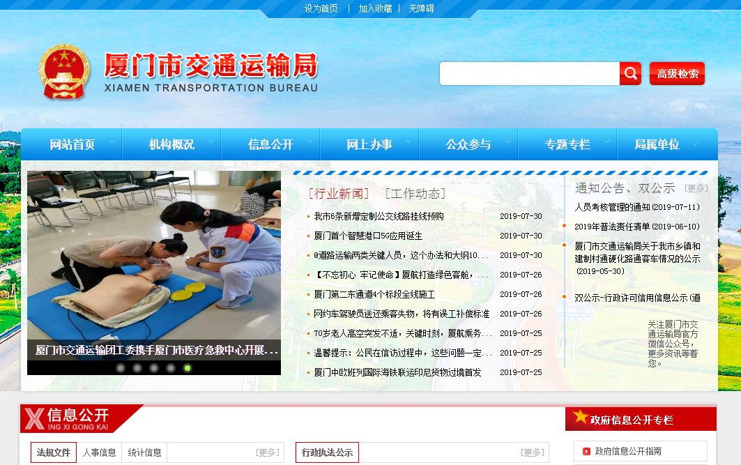 厦门市交通运输局主要职责:1、贯彻执行国家有关交通运输的法律法规和政策,起草交通运输行业(不含港口,下同)的地方性法规、规章,并负责监督实施;协同有关部门拟订有关交通运输方面的行业经济政策;指导、协调、监督全市交通综合行政执法工作。2、协调各种交通运输形式,组织拟订全市公路、铁路、公共交通、航空、邮电通讯总体发展规划;组织拟订并协调实施现代物流业发展战略和规划;拟订和组织公路运输枢纽规划、建设和管理;拟订并监督实施综合运输生产、交通固定资产投资的中长期计划与年度计划。3、承担全市公路、铁路、公共交通、航空、邮电等交通经济运行情况的统计分析、监控、预测和运行信息发布责任,依法协调解决交通经济运行中的重大问题。4、承担全市公路、公共交通、机场等交通基础设施及其配套项目的建设、养护、管理责任;协调全市铁路基础设施及其配套项目的建设和技术改造;组织实施重点交通工程建设,牵头组织交通基础设施建设工程的设计审查、招投标、安全施工、工程监理、竣工验收。5、承担道路交通运输市场的监管责任;依法负责对道路客货运输、运输服务业、城市公共交通、出租汽车和现代物流业等行业监督管理;负责城市轨道交通运营管理,负责道路交通运力和交通运输组织管理,按规定组织国家重点物资、交通战备物资和紧急客货运输;按权限负责交通运输业及有关服务业的审核、审批、报批与监管等工作。6、负责交通运输行业安全生产监督管理、局直属单位应急管理工作,依法组织或参与有关事故或突发事件的调查处理工作;负责交通运输系统社会管理综合治理工作。7、会同有关部门拟订全市交通运输行业投融资政策并组织实施;负责全市交通运输行业各项交通规费的征收、管理、使用、监督和审计;负责至全市交通基建项目建设资金的筹措、使用、管理和审计;承担交通资金核算中心职责。8、贯彻实施交通科技政策,组织重大交通科技开发、交通运输行业技术改造和科技成果推广应用;负责交通运输行业的技术和质量监督及环保、节能工作。9、承担全市交通战备工作责任;拟订和实施本地区交通战备保障计划,建立国防交通保障力量,组织实施本地区军事行动和抢险救灾等应急交通运输保障,配合军事部门做好民兵预备役及征兵工作;负责市国防动员委员会交通战备办公室的日常工作。10、承担道路涉外运输的审批、报批与监管责任;承担道路交通运输合资、合作、独资项目的立项审核、报批及国(境)外交通运输企业在本市设立办事机构的审核、报批与监管工作;归口协调、管理系统对港澳台交通与合作工作。11、归口管理、协调系统专业技术职称评聘、人才交流、智力引进工作。12、承办市委、市政府交办的其他事项。