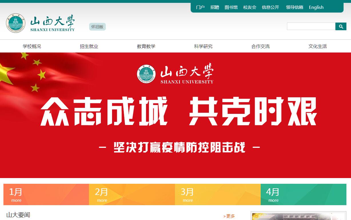 山西大学坐落在具有2500多年历史的文化古都——山西省省会太原市,学校前身为创建于1902年的山西大学堂,其悠远的文脉可以上溯至明代三立书院及清代晋阳书院和令德书院。早期的山西大学堂中西合璧、文理并重,办学思路开阔,育人理念先进,是我国近代高等教育重要的发祥地之一,也是三晋大地百年文化科教的重镇。历经116年办学历程,山西大学始终根植于华夏文明的沃土,以“教授高深学术,养成硕学闳材,应国家之需要”为己任,秉承“中西会通、求真至善、登崇俊良、自强报国”的光荣传统,弘扬“勤奋、严谨、信实、创新”的优良校风,培育了三十多万名优秀人才,为我国高等教育事业的发展作出了重要贡献。百年育英才,盛世续华章。近年来,承载着科教兴国、人才强国的时代使命,山西大学实现了跨越式发展,成为一所文理工并重的高水平综合性大学。1998年,成为山西省重点建设大学。2005年,成为山西省人民政府与教育部共同建设的省部共建大学。2012年,成为全国14所“中西部高校提升综合实力工程”入选高校之一,迈上了国家建设“有特色、高水平”大学的新平台。2014年,具有六十年办学历史的太原电力高等专科学校并入山西大学,学科结构进一步完善。2016年,成为国家中西部“一省一校”重点建设大学。2017年,山西省出台意见支持山西大学深入实施“1331工程”,对标“双一流”实现率先发展。2018年,在省部共建和“一省一校”建设基础上,我校正式成为教育部和山西省政府合建的部省合建高校。学科门类齐全,科研实力雄厚。学校拥有一批以国家重点学科、国家重点实验室、教育部重点实验室、教育部人文社会科学重点研究基地、教育部工程研究中心、国家地方联合实验室为代表的重要学科平台。设有涵盖文、史、哲、理、工、农、经、管、法、教、艺、医等12大学科门类93个本科专业以及10个本科双学位招生专业。现有博士学位一级学科授权点17个、二级学科授权点3个;硕士学位一级学科授权点37个、二级学科硕士点9个;硕士专业学位种类18个;自主设置交叉学科博、硕士点各2个;目录外二级学科博、硕士点各4个。化学和工程2个学科入选ESI全球排名前1%。近年来,学校主持的国家“973”计划项目、重点研发计划项目和国家自然科学基金、社会科学基金等各类项目稳步增加,先后荣获国家自然科学二等奖、技术发明二等奖、科技进步二等奖、教育部高校人文社科研究优秀成果一等奖等16项国家科研大奖。名师名人荟萃,教学成果显著。现有专任教师2095人,高级职称教师999人。其中包括中科院院士、国际杰出专业技术人才、长江学者特聘教授和讲座教授、千人计划海外高层次引进人才、万人计划高层次领军人才、国家杰出青年科学基金获得者、国家优秀青年科学基金获得者、全国模范教师和享受政府特殊津贴的专家近百人。拥有1个国家自然科学基金创新研究群体、3个国家级教学团队、2个教育部创新团队。5门课程入选国家级精品课程,3门课程入选国家级精品视频公开课、1门课程入选国家级精品资源共享课。9部教材成为国家级规划教材,共有10人获得全国优秀博士论文奖或提名奖。实践活动丰富,育人成绩斐然。学校现有全日制在校生30181人,其中本科生24088人,研究生5867人。开设“初民试验班”,引入研究性教学理念,强化实践教学环节,显著提升了学生学术素养和创新能力。学生一次性就业率始终保持在85%以上。在近几年的全国大学生数学建模竞赛、“挑战杯”课外科技作品竞赛、电子设计大赛、广告艺术大赛和英语竞赛中,我校学子共荣获全国特等奖、一等奖40余项;在奥运会、亚运会、全运会等赛事中,先后获得金银铜牌十余枚。国际交流广泛,留学渠道通畅。学校不断拓展对外交流,同美、日、韩、英、法、德、加等国家和地区的60余所高校及科研院所建立合作关系,与美国北卡罗莱纳大学夏洛特分校合作建立孔子学院。学校积极拓展本科生国际交流渠道,与多所国外大学建立了合作培养机制,为学生出国深造创造了良好条件。校园环境优雅,办学条件优良。目前拥有坞城校区、大东关校区、东山校区(在建)三个校区,总占地面积2985亩,建筑面积110万平方米。学校林荫遮道、花草围楼,处处散发着宜学宜居的人文气息,被省政府命名为“园林化单位”和“绿色学校”。图书馆馆藏文献360余万册,电子图书34万余册,教学科研仪器设备总值超11亿元。在建的东山新校区更将为学校人才培养和科研创新提供广阔的发展空间。百年传承,薪火相继。走过116年光辉历程的山西大学,面临着全面提升综合实力的难得机遇。站在新的历史起点上,学校将紧紧抓住国家“双一流”建设、部省合建、山西省“1331工程”建设和率先发展的历史机遇,坚持以提升办学质量为核心,走内涵式发展道路,争取早日建成区域特色鲜明的高水平研究型大学,努力建设社会更为满意的人才高地、贡献更为卓越的创新基地、辐射更为广泛的教育要地,为国家和地方经济社会发展提供更加有力的人才支撑和智力支持。