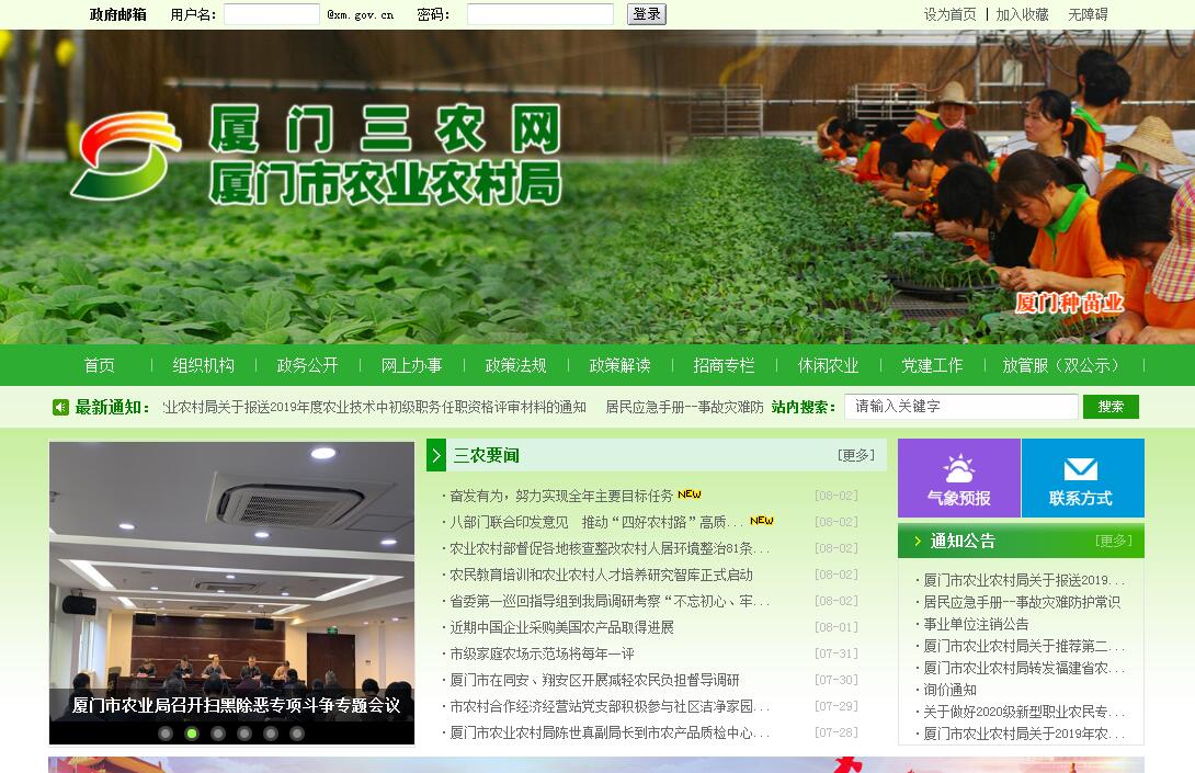 厦门市农业农村局主要职责:(一)贯彻落实党在农村的基本政策和国家有关农业的法律法规;拟订全市农村、农业产业政策和法规;参与制定农村经济和社会、农业发展战略和中长期发展规划,社会主义新农村建设规划、小康建设规划和扶持经济薄弱村开发计划。(二)承担市委农村工作领导小组的日常工作;开展“三农”(农业、农村、农民)重大问题的调查研究,提出深化农村经济体制改革的意见,供市委、市政府决策参考;指导基层农村、农业部门开展工作。(三)指导农民建立和实施多元化增收机制;协助抓好农村劳动力培训和转移就业;推进农业产业化经营,负责农业产业化龙头企业的指导、协调、服务与政策扶持工作。(四)指导城乡统筹协调发展;协调解决被征地农民的生产、生活出路;落实被征地农民的预留发展用地,推动实施农村“金包银”工程。(五)指导社会主义新农村建设和小康建设;负责抓好全市农村的“旧村改造、新村建设”;配合抓好农村通道路、通水、通有线、通公交等工作;落实边远山区和水源保护区实施移民造福工程。(六)指导推动农村城市化建设;指导农村村镇建设、小城镇建设;配合抓好农村基层组织建设和镇村干部队伍建设;指导农村乡镇体制改革。(七)指导农村服务热线和服务网站平台建设;配合指导农村精神文明建设。(八)指导农业社会化服务体系建设和农村集体经济组织、合作经济组织建设;指导、监督减轻农民负担和耕地使用权流转工作;指导镇、村集体经济组织的财务管理和审计工作;指导农村承包合同的管理;指导农机化管理工作。(九)组织实施农业现代化、产业化规划;引导农业、农村产业结构调整和农业资源的合理配置;预测并发布全市农业各产业产品及农业生产资料供求情况等农村经济信息。(十)组织农业资源区划、生态农业和农业可持续发展工作;组织农田改造和保护工作;指导农村可再生能源的开发利用以及农业生物物种资源的保护和管理。(十一)贯彻农业科研、教育、技术推广的方针政策;实施科教兴农战略,协助开展科技、文化、卫生、法律“四下乡”活动;组织农业科研成果、新品种、新技术的引进、试验、示范推广与管理;配合做好农业科技人才、农民教育、农业职业技能开发工作;组织对农业科技人员的继续教育工作;指导、培育农业合作组织、专业协会(学会)和中介组织建设。(十二)执行主管产业的国家、行业和地方标准;组织实施无公害农产品、绿色食品等农产品的质量鉴定、监督管理和植物新品种的保护工作;主管全市动植物对内检疫、防疫和兽医管理、兽药监察以及种子、种苗、农药、化肥等质量的监测、鉴定、执法监督管理,以及饲料、饲料添加剂的管理工作;组织、监督对全市动植物的防疫、检疫工作,发布疫情并组织扑灭。(十三)承办农业和农村经济社会涉外涉台事务和国际经济、技术交流与合作;参与研究制定厦台农业和农村经济社会合作有关政策、规划,并组织实施;负责农业和农村经济社会发展项目招商引资和内联工作;指导与省内农村的山海协作和对口帮扶。(十四)承办市委、市政府交办的其他事项。