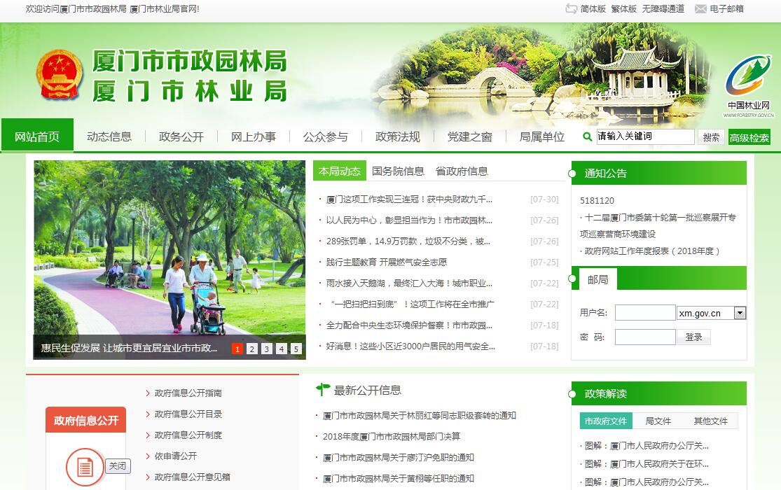 厦门市市政园林局成立于2002年初,由原厦门市市政工程管理局和厦门市园林风景管理局合并组成。2012年4月机构调整,厦门市林业局职能划入厦门市市政园林局(加挂厦门市林业局牌子)。厦门市市政园林局是主管全市市政园林林业行业管理的市政府工作部门,级别为副厅级,核定人员编制80人。其主要职责:(一)贯彻执行国家有关市政公用环卫、园林绿化、林业工作的方针、政策和法律法规;拟订地方性法规、规章、相关政策并监督实施。(二)参与编制城市总体规划,组织编制和实施市政公用环卫、园林绿化、林业专业规划;拟订城市市政建设、园林绿化、林业、市容环卫、供水、排水、污水处理、燃气、公共交通场站(含快速公交场站)、城市轨道交通、城市综合管廊、城市防洪排涝的中长期发展目标和年度计划,并负责监督实施。(三)负责城市市政、园林、林业资源调查评估和档案管理工作。(四)负责市政公用环卫事业特许经营的审批和监管;审报市政公用环卫、园林绿化、林业设施建设项目和维护专项工程项目以及资金计划与分配。(五)组织市政道路、市政设施、市容环境卫生、供水、排水、污水处理、燃气、公共交通场站(含快速公交场站)、城市轨道交通、城市综合管廊。(六)指导和管理城市管线工程建设和市容环境整治工作;负责城市道路挖掘和地上、地下市政公用及环卫设施的变更迁移、改造等审批。(七)审定和指导城市开发小区的市政公用环卫、园林绿化设施的规划设计和施工,并监督管理。(八)组织审定园林绿化工程项目的规划设计方案并监督实施;审核城市新建、改建、扩建项目的绿地率和设计方案并监督实施;会同有关部门划定城市绿线并进行管理;审核风景名胜资源保护范围和风景名胜区重要景点内的建设项目的立项和规划设计方案,并监督实施;负责园林绿化用地性质变更的审批工作。(九)配合建设部门做好市政施工企业及园林绿化施工、设计企业资质审批和管理;指导、监督市政园林工程的招投标、监理及质量安全;制定市政园林工程质量地方标准并监督实施。(十)制定市政道路、公用环卫管理标准和园林绿化养护质量等级并监督实施。(十一)负责新建公园的验收和定级工作;检查、监督公园的改建、扩建和管理。(十二)组织编制全市风景名胜资源保护规划;负责风景名胜资源的调查评估和等级审查申报工作;协调、指导、检查、监督风景名胜区的规划、建设、保护和管理工作。(十三)组织协调和指导检查全市全民义务植树活动和全市护林防火工作;负责树木砍伐、移植和临时占用绿地的审批工作;审定绿化补偿费。(十四)制定古树名木保护等级标准,并组织资源调查;指导、检查、监督全市古树名木的保护和管理工作。(十五)组织指导陆生野生动植物资源的保护和合理开发利用;负责陆生濒危物种和国家、省、市保护的陆生野生动植物及其产品出口的审核、报批;负责森林资源管理与保护;负责林地、林木权属管理和征用、占用林地的审核;组织协调湿地保护和有关国际公约的履行。(十六)负责指导全市森林公安工作和森林公安队伍建设;协调、监督查处破坏森林资源和陆生野生动植物资源的案件。(十七)承办市政园林林业涉外涉台事务和国际经济、技术交流与合作;参与研究制定厦台市政园林林业合作有关政策、规划,并组织实施;负责市政园林林业项目招商引资和内联工作。(十八)制定市政园林林业科技发展规划和年度计划;组织重点科研项目研究及科技成果鉴定、申报和推广;组织实施重大技术引进和创新工作;组织开展生物多样性保护工作。(十九)指导、协调、检查和监督各区市政建设和园林绿化林业管理工作。(二十)承办市委、市政府交办的其他事项。