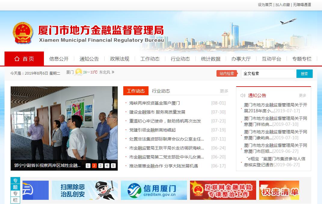 厦门市地方金融监督管理局主要职责:(一)贯彻执行国家、省有关金融工作的法律法规规章。按权限拟订地方金融监管等金融工作方面的地方性法规。研究拟订全市地方金融发展规划及相关地方金融政策并组织实施。负责统筹实施厦门两岸区域性金融服务中心建设和全市金融招商引资工作,指导、协调、推动金融服务业产业群建设。研究分析金融形势和全市金融运行情况并定期报告。研究地方金融改革发展稳定重大问题,提出改善金融环境、加强金融服务、促进金融业改革发展稳定的意见和政策建议。(二)联系、协调中央驻厦金融管理部门、地方金融行业管理部门和各类金融机构。负责建立健全地方政府、金融管理部门、行业管理机构、行业协会和金融机构的沟通合作机制。(三)指导、推动地方法人金融机构规范发展。依法依规负责市属控股(参股)金融企业管理(涉及中央事权和财政部门国有金融资本出资人职责事项除外)。负责对地方法人金融机构、具有融资性功能地方企业的监测、评价。(四)指导、推动全市资本市场建设和发展。推进全市企业改制上市(含新三板挂牌)及上市公司再融资和并购重组。协调、推动股权投资业(基金)发展。承办创业投资企业备案管理和监管工作。(五)负责融资担保体系建设。负责对小额贷款公司、融资担保公司、区域性股权市场、典当行、融资租赁公司、商业保理公司、地方资产管理公司、地方各类交易场所、网络借贷信息中介公司实施监管、服务和风险处置。(六)统筹协调、指导监督相关行业主(监)管部门加强对投资公司、开展信用互助的农民专业合作社、社会众筹机构的监管。协调推进全市互联网金融规范发展和风险防范处置工作。(七)牵头落实地方金融稳定有关工作,协调、配合中央驻厦金融管理部门打击非法金融活动、防范化解金融风险。承担市防范和处置非法集资工作领导小组办公室职责,协调推动非法集资风险防范处置工作,维护地方金融安全稳定。(八)负责地方金融对外交流合作相关工作。(九)承担市金融工作议事协调机制工作机构日常工作。(十)完成市委和市政府交办的其他任务。
