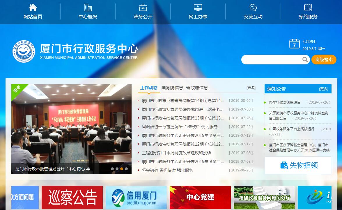 2011年初,厦门市委、市政府研究决定建设厦门市行政服务中心。为方便岛内、岛外群众办事,市行政服务中心选址厦门岛东部,紧靠BRT站点,总用地面积21740㎡,总建筑面积77829㎡,其中地下26473㎡,地上51356㎡。大楼共7层,其中地下两层为停车场。地上第1-3层设有审批服务大厅10个,柜台320个,审批室工作位637个,第4层为公共资源交易区,第5层为办公区。市行政服务中心还设有政府信息查阅点、咨询服务台、电子自助服务区及银行、商务、照相、邮政、餐厅、医务(育婴)室等配套服务。2012年5月,市行政服务中心启用。除了车驾管办证大厅、口岸联检大厅、出入境办证大厅以外,市直部门和下属单位所有行政审批和配套的公共服务项目都进入市行政服务中心集中办理。市行政服务中心分为四个功能区:经济综合服务区、社会事务综合服务区、建设综合服务区、公共资源交易综合服务区。经济综合服务区有3个办事大厅,共9个单位,包括工商、商务、经发、公安、质监等市直部门及国税等垂直部门;社会事务综合服务区有4个办事大厅,共33个单位,包括国土房产、劳动保障、民政、卫生、教育等市直部门及房产交易权籍登记、社保办理等下属事业单位;建设综合服务区有2个办事大厅,共34个单位,包括建设、规划、环保、市政园林、交通、水利等市直部门及电力、燃气、电信、有线电视等公共服务部门;公共资源交易综合服务区包括政府采购、建设工程招投标、土地招拍挂、其他公共资源交易等。市行政服务中心建有对外的门户网站和内部办公自动化网、审批系统、信息发布系统、排队叫号系统、公共资源交易管理系统、电子监察视频监控系统等,进驻单位所有办事指南、政策法规、问题库及办理结果等将在门户网上对外公开,每个大厅都设有显示屏,与业务系统相连,及时公开办件情况。所有审批服务及公共资源交易过程将全部纳入视频监控和电子监察系统,实现全方位、全过程监控。停车场实行智能化管理,工作人员的考勤、就餐、停车等实现了一卡通。市行政服务中心以“便民、高效、公开、廉洁”为服务理念,实行“一个窗口受理、一站式审批、一条龙服务、一个窗口收费”的运行模式;制定并推行预约服务、并联审批、服务承诺、重点项目代办等一系列便民、高效的工作制度。对审批量较少的单位,市行政服务中心设立综合窗口统一收发件。对多部门均需要的相同申报材料,将通过市行政服务中心数据库,实现资源共享。各进驻单位充分授权窗口工作人员,按照“一窗受理、内部运转、并联审批、限时办结”的要求,做到“受理(接办)、审查、审批、缴费、制证(文)”办理环节全部在中心办理完成,方便群众和企业办事,提高了办事效率,规范了办事行为,促进了我市行政服务水平的提升。厦门市行政服务中心管理委员会主要职责:贯彻执行有关行政审批工作的法律法规、规章和方针、政策;负责行政审批制度改革工作;对市政府各部门办理行政许可审批事项的工作实施统一管理,并制定具体管理方法;会同有关部门制定联合审批事项办理规程并组织实施;组织进驻部门为公民、法人或其他组织提供规范、高效、优质的行政审批服务,对涉及多部门审批的事项进行协调;会同市监察部门对进驻部门行政效能进行监督检查;指导各区政府行政审批管理的业务工作;承办市委、市政府交办的其他事项。