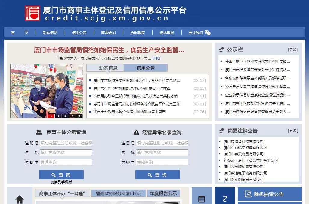 | 网站名称: | 厦门市商事主体登记及信用信息公示平台 | ||