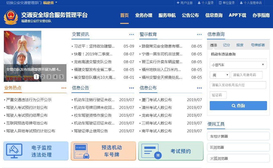 | 网站名称: | 福建省公安厅交警总队互联网交通安全服务管理平台 | ||