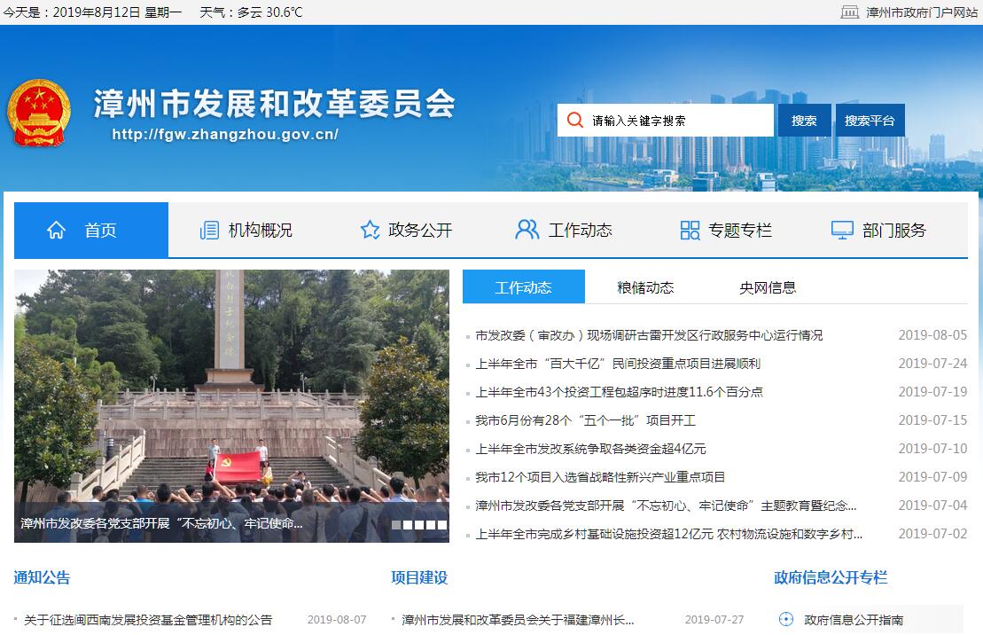 漳州市发展和改革委员会主要职责:(一)贯彻执行国家关于国民经济和社会发展、经济体制改革、对外开放、粮食流通和价格管理的法律法规、战略方针和政策;负责拟订并组织实施全市国民经济和社会发展战略、中长期规划和年度计划;受市政府委托向市人大提交国民经济和社会发展计划报告。(二)承担统筹全市经济社会发展的责任;研究和分析省内外、市内外经济形势,跟踪和预测全市经济社会发展情况,协调解决经济运行中的重大问题,提出经济社会保持持续较快发展的政策建议。(三)承担指导推进和综合协调全市经济体制改革的责任;研究经济体制改革和对外开放的重大问题;组织拟订全市综合性经济体制改革方案,协调有关专项经济体制改革方案;指导经济体制改革试点;组织研究提出我市深化医药卫生体制改革重大政策、措施的建议。(四)承担规划重大建设项目和生产力布局的责任;提出全市全社会固定资产投资总规模和投资结构的调控目标、政策及措施;按管理权限负责固定资产投资项目的审批(含核准、备案,下同)、审核以及项目节能评估和审查;负责重大建设项目后评价的管理与协调;指导和监督财政性资金和政策性贷款的使用,引导投资方向;指导和协调全市招投标工作,监督重大建设项目的招投标活动;组织开展重大建设项目稽察工作。(五)贯彻实施国家产业政策,协调产业发展的重大问题;负责全市相关产业发展规划和重大政策与国民经济和社会发展规划、计划的衔接平衡,推进经济结构战略性调整;协调农业和农村经济社会发展的重大问题;牵头拟订交通运输、能源保障总体规划,协调综合运输、能源保障体系建设的有关重大问题;研究拟订创意产业发展战略、规划和重大政策,协调解决创意产业发展的重大问题;组织拟订高技术产业发展、产业技术进步、项目成果转化的战略、规划和政策,协调解决重大技术装备推广应用等方面的重大问题。(六)承担组织编制全市主体功能区规划、协调规划实施并进行监测评估的责任;研究提出区域协调发展、重点区域开发、城镇化发展的战略、规划和政策;推进实施可持续发展战略,组织拟订并实施应对气候变化规划及政策措施;协调生态建设、环境保护、节能减排、循环经济发展的重大问题和项目建设。(七)研究提出全市利用外资和境外投资的战略、规划及总量平衡和结构优化的目标、政策;参与全市外债总量控制、结构优化与监测以及全市国际收支平衡工作;负责核准或转报利用外资项目和境外投资项目。(八)承担重要商品总量平衡和宏观调控的责任;根据国内外两个市场与我市有关重要商品的供求情况,调整粮食等重要商品全市供求的总量与进出口计划;会同有关部门组织市级部分重要商品、战略物资的储备;参与研究价格政策。(九)研究提出全市资本市场发展战略、规划和政策建议,指导和推进全市资本市场建设和发展,协调解决全市资本市场发展的重大问题。指导、推动企业和政府投资项目直接融资。(十)负责社会发展与国民经济发展的政策衔接,组织拟订全市社会发展战略、总体规划和年度计划;参与拟订人口和计划生育、科学技术、环境保护、教育、文化、卫生、民政等发展政策,推进社会事业建设;研究提出促进就业、调整收入分配、完善社会保障与经济协调发展的政策建议,协调社会事业发展和改革中的重大问题及政策。(十一)组织编制全市国民经济动员规划、计划,研究国民经济动员与国民经济、国防建设的关系,协调相关重大问题;组织实施国民经济动员有关工作。(十二)研究提出我市粮食宏观调控、总量平衡以及粮食流通中长期规划,负责全市粮食流通宏观调控的具体工作,推动我市现代粮食流通产业的发展;承担市级储备粮行政管理责任;负责对粮食收购、储存、运输环节的粮食质量安全和原粮卫生进行监督管理。(十三)依法对粮食经营者从事粮食收购、储存、运输活动和政策性用粮购销活动以及执行国家粮食流通统计制度情况进行监督检查;负责全市粮食流通的行业管理,拟订并组织实施全市粮食市场体系、粮食流通、仓储设施的建设规划;指导协调粮食最低收购价等政策性粮食购销和粮食产销合作。(十四)贯彻执行国家、省有关价格的法律、法规、规章和政策;依法起草有关规范性文件;制定并组织实施全市价格方针、政策和价格改革方案;拟订价格总水平调控目标并负责组织实施;监测、预警、调控市场价格,分析价格形势;负责协调部门之间、行业之间、区域之间的价格争议和价格衔接;负责价格调节基金的征收、管理、使用工作;组织实施价格管理、听证和监审;管理省制定的行政、事业性收费。(十五)依法查处商品价格、服务价格、行政事业性收费项目和标准等价格违法行为;依法查处价格垄断行为;依法受理各种价格、收费违法行为的举报、投诉和行政复议申请;指导群众价格监督,组织开展价格和收费的社会监督工作;依法负责价格评估机构、价格评估人员的管理工作;受委托承担涉案财物价格鉴定和涉税、涉纪财物价格认定;负责涉案物品价格鉴定的监督管理;负责全市价格争议调解处理、监督管理及指导工作。(十六)承办市委、市政府交办的其他事项。