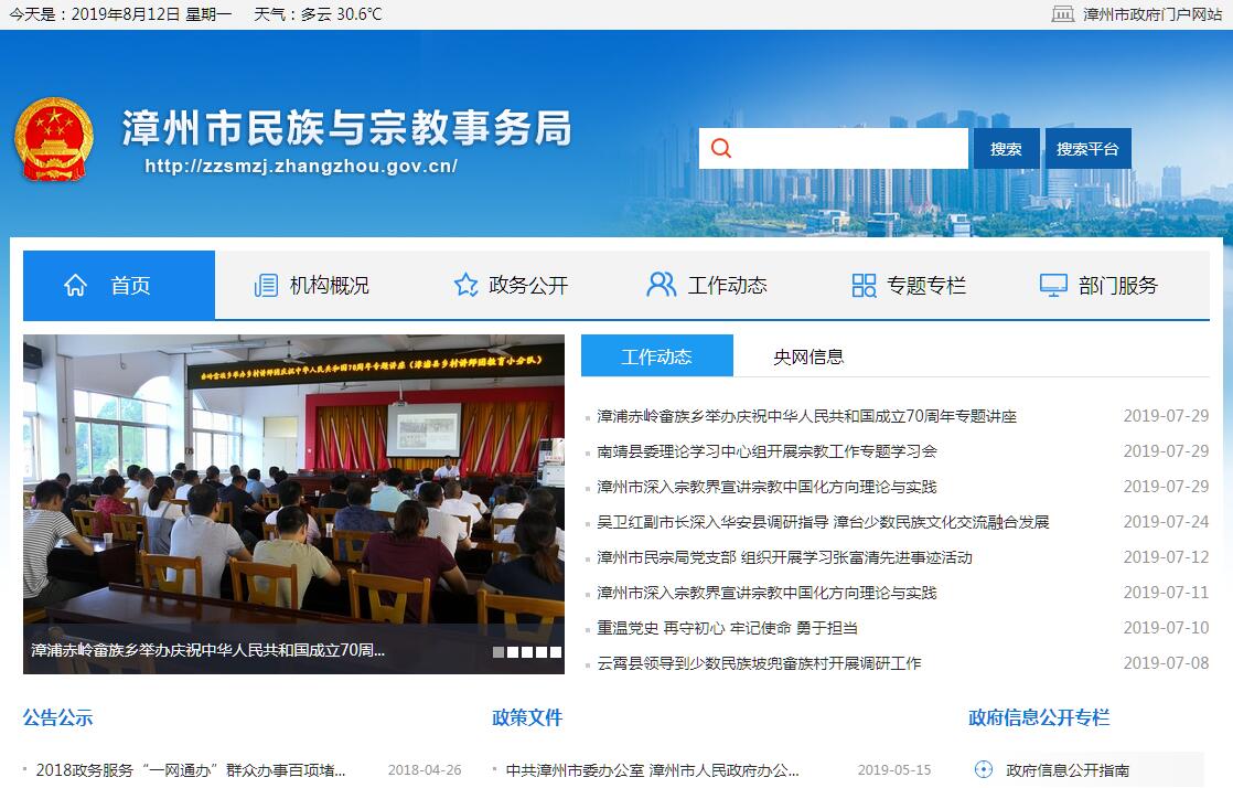 漳州市民族与宗教事务局主要职责:1、贯彻执行党和国家有关民族、宗教工作的法律法规和方针政策;组织民族、宗教政策理论和民族、宗教工作重大问题及难点、热点问题的调查研究,提出有关政策建议。2、拟订民族、宗教规范性文件,组织、指导民族、宗教政策和法律法规规章的宣传教育工作,协调处理民族关系、宗教事务中的重大事项,促进民族和睦、宗教和谐,保障和维护少数民族、宗教界合法权益;负责对县(市、区)政府民族宗教工作的业务指导。3、负责协调推动有关部门履行民族工作相关职责,协调开展民族团结进步宣传教育活动,协调指导做好扶持人口较少民族高山族发展工作和城市民族工作,研究提出协调民族关系的工作建议,促进各民族共同团结奋斗、共同繁荣发展。4、研究分析少数民族和民族地区经济社会发展方面的问题并提出政策措施建议,协调、配合有关部门处理相关事宜,承担市民族工作协调委员会的日常工作。5、参与起草少数民族事业发展等专项规划,监督检查实施情况;参与起草少数民族和民族地区经济社会相关领域的发展规划,推进民族事务服务体系建设和民族、宗教事务信息化建设。6、依法管理宗教事务,依法保护公民宗教信仰自由和正常的宗教活动。指导县(市、区)政府民族宗教事务部门依法履行职能、处理宗教事务重大事件,防范利用宗教进行的非法、违法活动,抵御境外利用宗教进行的渗透活动,指导和帮助宗教界开展对外的宗教交往活动。7、指导宗教团体依法依章开展活动,引导宗教界开展与社会主义社会相适应的各项活动,协助宗教团体办理有关事务。8、依法管理民间信仰活动及场所,对涉及民间信仰的重大问题进行调研并提出建议,协助县(市)区政府及时处理民间信仰方面的重大问题,指导县(市、区)政府民族宗教事务部门做好民间信仰活动的管理工作。9、负责联系少数民族干部和宗教界人士,协助有关部门做好少数民族干部的培养、教育和使用工作。10、承办市委、市政府交办的其他事项。