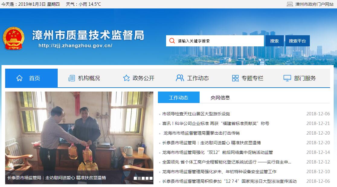 漳州市质量技术监督局主要职责:(一)贯彻执行国家质量技术监督法律、法规和政策,负责质量技术监督相关法律、法规的组织实施和行政执法工作。(二)负责质量宏观管理,组织实施国务院《质量振兴纲要》和省、市质量振兴计划;负责落实名牌发展战略,负责管理名牌申报工作;负责产品质量诚信体系建设,组织重大产品质量事故调查,实施缺陷产品召回制度;会同有关部门组织实施重大工程设备质量监理制度;承担产品防伪监督管理工作。(三)负责统一管理全市认证认可工作,监督管理全市认证认可活动;根据授权负责全市实验室和检查机构资质认定和资质监管工作。(四)负责产品(除食品、食品添加剂和化妆品外,下同)质量安全监督工作,编制实施产品质量监督抽查计划,组织产品质量监督检验的后处理工作;负责工业产品生产许可证管理工作;受理产品质量申诉,按规定权限组织产品质量安全仲裁检验、鉴定;组织开展产品质量安全专项整治工作,依法查处产品质量违法行为;按规定权限监督检查危险化学品包装物、容器的质量。(五)负责统一管理全市计量工作,推行法定计量单位和国家计量制度,依法管理计量器具及量值传递和比对工作,监督管理计量检定机构、社会公正计量机构及计量检定人员的资质资格,监督商品量、市场计量行为和计量仲裁检定;负责机动车安全技术检验机构资格的监督管理。(六)负责统一管理全市标准化工作,负责管理采用国际标准产品标志工作;负责管理企业产品标准备案工作;监督检查标准实施情况;按规定负责全市组织机构代码和商品条码工作。(七)承担特种设备的安全监察、监督工作,负责特种设备应急预警、事故预防和调查处理及分析评估工作;监督检查高耗能特种设备节能标准的执行情况。(八)负责制定并组织实施质量技术监督的科技发展和技术机构建设规划,负责相应的科研和技术引进工作。(九)承办市委、市政府交办的其他事项。