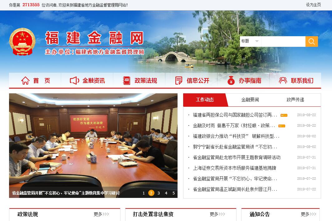 福建省地方金融监督管理局是根据《福建省机构改革方案》《福建省省级机构改革实施方案》设立的福建省政府直属机构。福建省地方金融监督管理局挂金融工作办公室牌子。2018年10月24日上午,福建省地方金融监督管理局正式挂牌。2018年10月24日,福建省地方金融监督管理局挂牌成立。省委常委、常务副省长张志南,省政府党组成员郭宁宁出席挂牌仪式,并召开座谈会。座谈会上,大家表示,要深刻领会习近平总书记关于金融工作的重要论述,扎扎实实把金融工作做好,促进经济与金融良性循环、健康发展。要不折不扣贯彻落实中央批准的我省机构改革实施方案,按照中央和省委省政府的有关部署和要求,高标准完成改革的各项工作。要坚定不移抓好服务实体经济、防控金融风险、深化金融改革三项任务,为高质量发展落实赶超贡献力量。按照《福建省省级机构改革实施方案》,将省金融工作办公室的职责,以及省经济和信息化委员会有关小额贷款公司、融资担保公司、典当行、融资租赁公司(内资)的监管职责,省商务厅的融资租赁公司(外资)、商业保理公司的监管职责,省发展和改革委员会的推进全省企业上市和再融资职责等整合,组建地方金融监督管理局,加挂省金融工作办公室牌子。省地方金融监督管理局主要职责是,贯彻落实国家有关地方金融监管的政策和法律法规;承担我省有关金融协调服务、地方金融监管、金融风险防范和处置,以及承担省金融稳定发展委员会日常工作等。