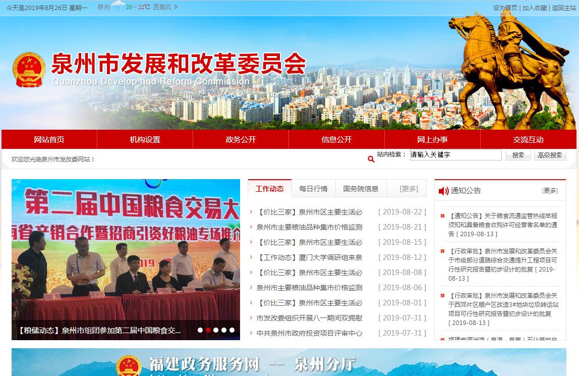 泉州市发展和改革委员会主要职责:(一)贯彻执行国家、省关于国民经济和社会发展、经济体制改革的法律法规、战略方针和政策;起草并组织实施我市国民经济和社会发展、经济体制改革的有关政策;拟订并组织实施全市国民经济和社会发展战略、中长期规划和年度计划,提出总量平衡、发展速度和结构调整的目标、政策建议;受市人民政府委托向市人民代表大会提交国民经济和社会发展计划的报告。(二)承担统筹全市经济社会发展的责任;研究分析国内外、省内外和全市经济形势,跟踪和预测全市经济社会发展情况,协调解决经济运行中的重大问题;提出经济社会保持持续较快发展的政策建议。(三)承担指导推进和综合协调全市经济体制改革的责任;研究经济体制改革的重大问题;组织拟订全市综合性经济体制改革方案,协调有关专项经济体制改革方案,会同有关部门衔接重要专项经济体制改革;指导经济体制改革试点和改革试验区工作。(四)承担规划重大建设项目和生产力布局的责任;拟订全市全社会固定资产投资总规模和投资结构的调控目标、政策及措施,衔接平衡需要安排市级政府投资和涉及重大建设项目的专项规划;安排市级重点项目前期费用;按规定负责固定资产投资项目的审批 ( 含核准、备案,下同 ) 、审核、转报以及项目节能评估和审查;负责重大建设项目后评价的管理与协调;指导和监督政策性贷款的使用,引导民间投资的方向;指导和协调全市招投标工作,监督重大建设项目的招投标活动;组织开展重大建设项目稽察工作。(五)贯彻执行国家、省产业政策,协调产业发展的重大问题;负责全市相关产业发展规划和重大政策与国民经济和社会发展规划、计划的衔接平衡,推进经济结构战略性调整;协调农业和农村经济社会发展的重大问题;会同有关部门拟订服务业发展战略和重大政策,参与拟订和实施现代物流产业发展战略、规划;牵头拟订交通运输、能源保障总体规划,协调综合运输、能源保障体系建设的有关重大问题;研究拟订创意产业发展战略、规划和重大政策,协调解决创意产业发展的重大问题;组织拟订高技术产业发展、产业技术进步、项目成果转化的战略、规划和政策,协调解决重大技术装备推广应用等方面的重大问题。(六)承担组织编制全市主体功能区规划、协调规划实施并进行监测评估的责任;研究提出区域协调发展、重点区域开发、城镇化发展的战略、规划和政策。(七)研究提出全市利用外资和境外投资的战略、规划、总量平衡与结构优化的目标、政策;参与全市外债总量控制、结构优化与监测以及全市国际收支平衡工作;参与全市对外招商项目推介,按规定承担审批、审核、转报利用外资项目和境外投资项目。(八)承担重要商品总量平衡和宏观调控的责任;根据国内外两个市场与我市有关重要商品的供求情况,调整粮食等重要商品市内供求的总量与进出口计划;会同有关部门组织市级部分重要商品、战略物资的储备;参与研究价格政策。(九)研究提出全市资本市场发展战略、规划和政策,指导、推进全市资本市场建设和发展,协调解决全市资本市场发展的重大问题;指导和推动企业直接融资。(十)负责社会发展与国民经济发展的政策衔接,组织拟订全市社会发展战略、总体规划和年度计划;参与拟订人口和计划生育、科学技术、环境保护、教育、文化、卫生、民政等发展政策,推进社会事业建设;研究提出促进就业、调整收入分配、完善社会保障与经济协调发展的政策建议,协调社会事业发展和改革、医疗体制改革中的重大问题及政策。(十一)推进实施可持续发展战略,组织拟订并实施应对气候变化规划及对策;衔接生态建设、资源节约和环境保护规划,协调生态建设、环境保护、节能减排、循环经济发展的重大问题和项目建设。(十二)组织编制全市国民经济动员规划、计划,研究国民经济动员与国民经济、国防建设的关系,协调相关重大问题;组织实施国民经济动员有关工作。(十三)负责全市重点项目建设管理工作。检查督促、指导市重点项目实施和考核,协调解决市重点项目的有关问题。(十四)承办市委、市政府交办的其他事项。