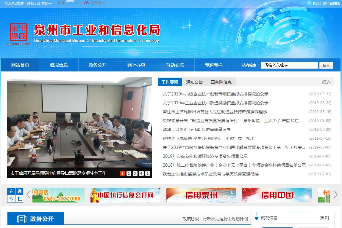 泉州市工业和信息化局主要职责:(一)贯彻执行国家、省工业和信息化发展战略、法律法规和政策。拟订并组织实施我市工业高质量发展的战略、规划、计划及政策措施,指导、监督、检查其执行情况,推进现代产业体系建设。参与拟订全市国民经济和社会发展战略、中长期规划和年度计划。(二)负责监测分析全市工业经济运行态势,并发布相关信息。拟订并组织实施工业运行调控目标、政策和措施。协调解决工业运行中的有关问题。建立并组织实施重点行业、重点企业、重点产品运行调度机制和工业经济运行应急调度机制。建立工业企业服务机制。根据应急响应需要,组织协调应急救援物资设备的生产与调运。(三)负责拟订并组织实施我市工业行业发展、结构调整和转型升级的政策措施。负责提出工业和有关信息化固定资产投资方向,按规定负责管理工业和有关信息化投资项目,指导推进企业技术改造,依法参与指导和推动环境保护工作。拟订并组织实施工业和有关信息化投资项目利用政府资金的政策和使用管理办法。负责拟订指导推进民营经济发展的政策措施。牵头承担民营企业产业项目对接。按规定指导、推进我市工业和有关信息化领域与台港澳及“一带一路”(国际产能合作)等产业交流与合作。负责指导、推进工业和有关信息化龙头企业、产业集群发展,指导、协调全市省级以下工业园区(基地)建设。(四)负责相关能源行业管理。负责监测分析能源运行情况并发布相关信息。衔接能源生产和供需平衡,协调解决能源运行中的重大问题。负责全市电力市场建设、运行和监督管理。提出能源价格调整建议。负责煤炭、电力、成品油、天然气等能源产品的应急保障工作。负责全市电力运行与调度管理。负责天然气调度及依法分工负责陆上石油天然气长输管道设施保护监管。依法负责全市发电企业并网运行条件审查。依法承担全市电力设施保护行政执法工作。(五)负责全市节能监督管理,组织开展节能监察。组织协调、监督管理绿色制造、清洁生产促进、循环经济发展等工作。指导能源节约和资源综合利用。依法承担相关行政执法工作。(六)负责材料工业、石化工业、装备工业、消费品工业、电子信息工业、软件和信息服务业等行业管理工作。指导拟订并组织实施行业技术规范、标准和产业政策。指导行业质量和品牌工作。协调解决行业运行发展中的重大问题。依法管理稀土资源综合开发和合理利用。负责民爆器材行业管理和生产销售环节的安全监管。按分工负责化工建设工程涉及的相关质量监督管理。负责全市煤矿企业的安全监管工作。(七)负责指导、服务企业改革与发展。牵头拟订促进中小企业发展的政策措施。负责建立和完善中小企业服务体系。引导和支持企业提升经营管理水平。培育发展“单项冠军”、“隐形冠军”、“专精特新”企业。推动产融合作。(八)负责牵头协调推进战略性新兴产业发展。负责拟订并组织实施企业技术创新的政策措施。指导引进重大技术装备的消化创新。承担指导、协调企业技术创新公共服务平台和企业创新能力建设有关工作。指导和推动产学研联合,组织实施重大产业示范工程。(九)负责协调、指导生产性服务业发展,研究提出相关政策措施,推进制造业和服务业融合发展。统筹规划、指导现代物流、工业设计等生产性服务业发展。(十)负责拟定工业与相关产业融合发展及管理创新的政策建议,促进产业链、价值链、供应链深度融合,推进产业协作配套工程建设。统筹、规划、协调信息化和工业化深度融合工作。推进工业互联网、工业数字经济、物联网和信息消费有关工作,会同有关部门研究提出相关政策措施并组织实施。(十一)依法负责软件、集成电路设计行业等有关信息化行业安全生产监督管理;负责职责范围内有关行业安全生产专项整治及隐患排查治理相关工作。(十二)按有关职责分工,负责加强本系统、本领域人才队伍建设。(十三)承办市委、市政府交办的其他事项。