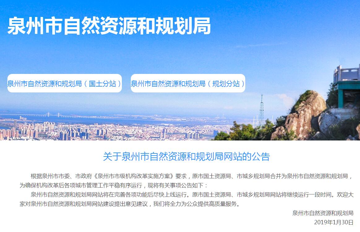泉州市自然资源和规划局主要职责是:(一)承担保护与合理利用全市土地资源、矿产资源等自然资源的责任。组织拟定全市国土资源发展规划,研究提出全市国土资源供需总量平衡的政策建议,参与全市宏观经济运行、区域协调、城乡统筹的研究并拟订涉及国土资源的调控政策和措施,拟订并组织实施国土资源领域资源节约集约利用和循环经济的政策措施。(二)承担规范全市国土资源管理秩序的责任。贯彻执行国家、省有关国土资源管理和测绘的法律、法规、政策以及相关的技术规程和标准,起草并组织实施有关国土资源管理的地方性政策;负责有关行政复议工作,指导监督国土资源行政执法工作,调查处理国土资源违法案件;负责全市测绘工作的统一监督管理。(三)承担优化配置全市国土资源的责任。编制并组织实施全市土地利用总体规划、土地利用年度计划、土地整理复垦开发规划和其他专项规划、计划;组织编制全市矿产资源、地质勘查、地质环境等规划以及地质灾害防治、矿山地质环境保护、地质遗迹保护等其他有关的专项规划,并监督检查各项规划执行情况;依法指导和审查国土资源有关规划;参与报市政府和省政府审批的涉及土地、矿产资源的相关规划的审查。(四)负责规范全市国土资源权属管理(不含林木林地权属管理)。依法保护土地资源、矿产资源等自然资源所有者和使用者的合法权益,组织承办和调处权属争议;承担土地确权、登记、发证等具体工作;承担各类土地登记资料的收集、整理、共享和汇交管理,提供社会查询服务。(五)承担全市耕地保护的责任,确保规划确定的耕地保有量和基本农田面积不减少。贯彻执行耕地保护政策和基本农田保护制度,对占用耕地、未利用土地开发、土地整理、土地复垦和耕地开发等实施监督;组织实施土地用途管制,指导农用地转用和土地征收征用;保证耕地总量动态平衡,监督占用耕地补偿制度执行情况,保护耕地使用者的合法权益;依法承担报市政府、省政府和国务院审批的各类用地的审核、报批工作。(六)承担及时准确提供全市土地利用现状数据的责任。组织土地资源调查、地籍调查、土地统计和动态监测;负责城乡地籍、土地分等定级等工作。(七)承担节约集约利用土地资源的责任。规范土地使用权出让、租赁、作价出资和转让等行为,管理和监督城乡建设用地供应、政府土地储备、土地开发和节约集约利用;会同物价部门组织实施全市基准地价、标定地价等政府公示地价制度,会同农业部门监督管理农村集体建设用地使用权的流转;根据国家制定的目录和建设用地控制指标等审查建设用地项目,承担报市政府、省政府和国务院审批的改制企业的国有土地资产的处置。(八)承担规范国土资源市场秩序的责任。监测土地市场和建设用地利用情况,监管地价;拟订并按规定组织实施土地使用权出让、租赁、作价出资、转让、交易和政府收购储备管理办法,规范土地市场;贯彻实施国有土地划拨使用目录指南和乡(镇)村用地管理办法;指导农用地分等定级工作和农村集体非农土地使用权的流转管理;规范和监管矿业权市场,组织对矿业权人勘查、开采活动进行监管,组织实施探矿权、采矿权的招标、拍卖及转让、出租工作;规范和监管国土资源相关社会中介组织和行为,依法查处违法行为。(九)负责矿产资源开发利用的监督管理。依法管理矿业权市场和采矿权审批登记发证,组织编制实施矿业权设置方案。(十)依法管理地质勘查行业和矿产资源储量。组织实施全市地质调查评价、矿产资源勘查,管理市级地质勘查项目,组织地质勘查专项工作,管理地质勘查资质、地质资料、地质勘查成果,按规定征收矿产资源补偿费和采矿权价款,管理地质勘查专项资金项目;确认探矿权、采矿权评估结果,管理全市公益性地质调查和战略性矿产勘查工作。(十一)承担地质环境保护的责任。组织实施矿山地质环境保护,监督管理古生物化石、地质遗迹、矿业遗迹等重要保护区、保护地;依法管理水文地质、工程地质、环境地质、城市地质、农业地质、旅游地质的勘查、评价工作;检测、监督防止地下水过量开采和污染。(十二)承担地质灾害预防和治理的责任。指导地质灾害应急处置,组织、协调、指导和监督地质灾害防治工作;拟订并组织实施重大地质灾害等国土资源突发事件应急预案。(十三)依法征收资源收益,规范、监督资金使用。依法组织土地、矿产资源专项收入的征管,配合有关部门组织实施收益分配制度;参与管理土地、矿产等资源性资产,参与管理国家出资形成的矿业权益;负责有关资金、基金的预算和财务、资产管理与监督。(十四)贯彻执行国土资源科技发展和人才培养政策,推进国土资源科技进步,组织开展国土资源对外合作与交流,按有关规定管理县(市)国土资源管理部门领导。(十五)承办市委、市政府交办的其他事项。
