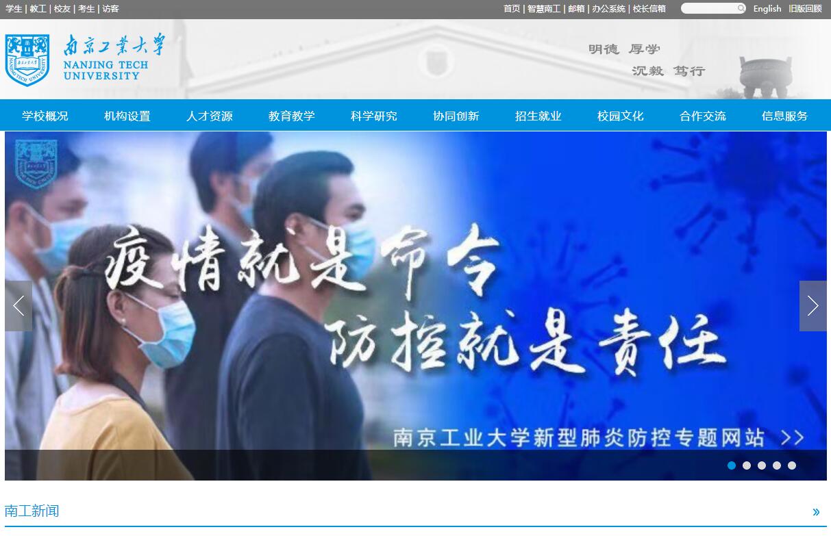 南京工业大学具有百年办学历史,是首批入选国家“高等学校创新能力提升计划(2011计划)”的14所高校之一,是江苏高水平大学建设“全国百强省属高校”、江苏省重点建设高校、江苏省综合改革试点高校、江苏省人才强校试点高校、国家首批深化创新创业教育改革示范高校、全国高校实践育人创新创业基地、教育部首批卓越工程师培养计划试点高校和专业学位研究生教育综合改革试点高校。学校设有11个学部,28个学院,各类学生3万余人。有国家一级重点学科1个,江苏省一级学科国家重点学科培育建设点1个,江苏高校国家重点学科培育建设点2个,江苏高校优势学科一期工程4项、二期工程6项,“十三五”江苏省重点学科2个,“十三五”国家国防特色学科4个,博士后科研流动站7个,一级学科博士学位授予点6个,二级学科博士学位授予点38个(含覆盖),一级学科硕士学位授予点22个,二级学科硕士学位授予点112个(含覆盖),专业学位授权点(含领域)26个,本科专业(含方向)84个,跨工、理、管、经、文、法、医、艺8个学科门类。现有教职工2900余人,拥有高级职称人员1300余人,其中中国科学院院士2人、中国工程院院士5人、第七届国务院学科评议组成员2人、全国杰出专业技术人才2人、教育部“长江学者”特聘教授7人、国家“973”计划项目首席科学家8人、国家“千人计划”人选30人(其中青年千人17人)、国家杰出青年基金获得者13人、国家优秀青年基金获得者7人;教育部“长江学者和创新团队发展计划”创新团队4个、滚动支持创新团队2个;科技部“创新人才推进计划”中青年科技创新领军人才5人;中组部“万人计划”百千万领军人才1人、中青年科技创新领军人才4人;百千万工程国家级人选11人;“十二五”“863”计划专家委员会专家1人、主题专家组专家3人,教育部高等学校教学指导委员会委员6人,全国模范教师2人,全国优秀教师4人,全国黄大年式教师团队1个。学校坚持教学工作中心地位不动摇,以质量求生存,以特色求发展,着力构筑并不断优化人才培养体系。现有国家级教学团队2个、国家级实验教学示范中心1个、国家级精品教材1门、“十二五”国家级规划教材8部、国家级特色专业建设点12个、教育部专业综合改革试点2个、教育部卓越工程师教育培养计划试点专业7个、国家级精品课程3门、国家级双语教学示范课程2门、国家级精品资源共享课2门、江苏高校品牌专业建设工程一期项目5个、江苏省品牌专业8个、江苏省特色专业10个、江苏省重点专业类12个(涵盖30个专业)、江苏省卓越工程师教育培养计划(软件类)试点专业2个、省实验教学示范中心18个。2006年学校获得教育部组织的本科教学工作水平评估优秀等级,2016年顺利通过教育部本科教学工作审核评估。2017年获批教育部首批中美青年创客交流中心。学校具有雄厚的科研实力,设有材料化学工程国家重点实验室、国家柔性电子材料与器件国际联合研究中心、国家生化工程技术研究中心、国家特种分离膜工程技术研究中心和国家热管技术研究推广中心等国家级科研机构5个,省部级研究中心24个,省部级重点实验室23个。“十二五”以来,学校科研成果获各级各类奖励190项,其中国家技术发明奖二等奖5项、国家科技进步奖二等奖4项(其中参与1项),入选2016年度教育部“中国高等学校十大科技进展”1项。现有何梁何利基金科学与技术进步奖4人、科学与技术创新奖1人。学校重视科学研究和成果转化,坚持产学研互动发展。南京工业大学科技园为国家级大学科技园,南京工业大学技术转移中心为国家技术转移示范机构,拥有国家知识产权培训(江苏)基地。“十二五”以来,承担了包括国家“973”计划项目、“863”计划项目、国家科技支撑计划项目、国家自然科学基金项目在内的各级各类课题8900余项,科技经费27.7亿元,取得了一批高水平研究成果,为相关行业、江苏地方经济建设和社会发展作出了积极贡献。学校实施全球拓展战略,与30多个国家和地区的70余所世界一流大学和高水平科研机构建立了合作关系。其中,与英国帝国理工学院、俄罗斯莫斯科国立大学、新加坡南洋理工大学等世界著名学府成立了“国际联合研究中心”;“柔性电子创新引智基地”项目入选国家“高等学校学科创新引智计划”;是孔子学院总部/国家汉办的“孔子学院奖学金”接收院校,与南非约翰内斯堡大学、西班牙萨拉戈萨大学共建“孔子学院”;爱尔兰塔拉理工学院合作举办 “3+1”本科教育中外合作办学项目3个;与英国谢菲尔德大学合作举办“3+1”本科教育中外合作办学项目3个;与法国勃艮第大学合作举办“1+2”硕士研究生教育中外合作办学项目1个;与美国加州大学戴维斯分校、新加坡国立大学、新加坡南洋理工大学、英国帝国理工学院、英国圣安德鲁斯大学、英国卡迪夫大学、澳大利亚新南威尔士大学等知名高校开展学生交流项目;现有来自10多个国家的数十名外籍专家和世界各国的两百余名海外留学生。在新的历史时期,学校将深入学习贯彻习近平新时代中国特色社会主义思想,牢牢把握“立德树人”的根本要求,着力加强内涵建设,继续发扬产学研合作和协同创新的特色优势,不断提高服务国家和江苏社会经济发展的能力,凝心聚力,深化改革,争先进位,全面开启高水平大学和一流学科建设新征程。