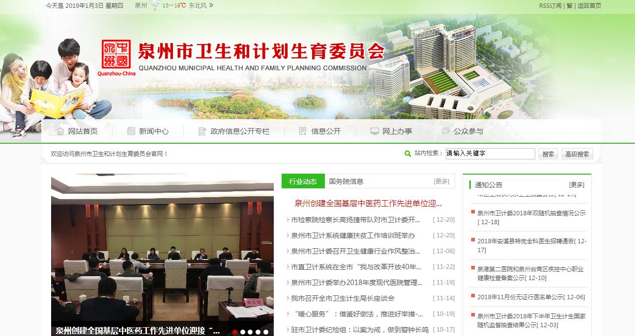 泉州市卫生健康委员会是泉州市政府主管全市卫生计生工作的工作部门。内设机构:办公室、规划与信息科、财务科、卫生应急办公室(市突发公共卫生事件应急指挥中心)、疾病控制科(卫计综合监督科)、爱国卫生运动委员会办公室、医政科(市药品集中采购管理办公室)、中医药科(科技教育科)、基层卫生科与妇幼保健服务科、计划生育基层指导科(宣传科)、计划生育家庭发展科(政策法规科)、流动人口计划生育服务管理科、行政审核审批科、人事科、保健办公室(市保健委员会办公室)、系统党委及其办公室(卫生产业工会)、卫计委机关党委。 其主要职责:(一)贯彻执行国家、省有关卫生、计划生育和中医药的法律法规和方针政策,起草卫生、计划生育和中医药事业发展的政策、规划,并负责组织实施;推进医药卫生体制改革和医疗保障,统筹规划与协调全市卫生和计划生育服务资源配置。(二)负责拟定并组织落实疾病预防控制规划、免疫规划、危害人民健康的公共卫生问题的干预措施;拟订卫生应急和紧急医学救援预案、突发公共卫生事件监测和风险评估计划,组织和指导突发公共卫生事件预防控制与应急处置;协调有关部门对重大疾病实施防控与干预;按规定发布突发公共卫生事件应急处置信息。(三)负责拟订和指导落实职责范围内的职业卫生、放射卫生、环境卫生、学校卫生、公共场所卫生监管政策措施和饮用水卫生监督政策措施,组织开展相关监测、调查、评估;负责传染病防治监督工作;组织开展食品安全风险监测、评估,负责食品安全企业标准备案。(四)负责拟订并组织实施基层卫生、妇幼卫生和计划生育服务发展规划和政策措施;负责妇幼保健的综合管理和监督,依法管理计划生育技术服务工作,组织指导基层卫生、妇幼卫生和计划生育服务体系建设,推进基本公共卫生和计划生育服务均等化,完善基层运行新机制和乡村医生管理制度,完善合理分级诊疗模式。(五)负责医疗机构和医疗服务全行业监督管理;拟订并组织实施医疗机构及其医疗服务、医疗技术、医疗质量、医疗安全以及采供血机构管理的政策;组织实施全市医疗机构准入和评审评价工作,组织实施卫生专业技术人员准入、资格标准、执业规则和服务规范,建立医疗服务评价和监督管理体系;依法规范医疗服务市场;指导平安医院建设。(六)统筹推进医疗保障、医疗服务、公共卫生、药品供应、监管体制综合改革;负责指导基层医疗卫生机构综合改革,健全网络化城乡基层医疗卫生服务运行机制;负责推进公立医院改革,建立科学的医疗绩效评价机制和适应行业特点的人才培养等制度;鼓励和引导社会资本举办医疗机构;建设和谐医患关系,执行医疗服务和药品价格政策。(七)贯彻落实国家药物政策,组织实施国家药物制度;依法建立完善计划生育药具管理制度。负责市药品集中招标采购领导小组办公室的日常工作。(八)贯彻中西医并重的方针,完善中医药事业发展政策和机制,健全中医药服务和管理体系,扶持和促进中医药事业发展,拟定中医药中长期发展规划;推进中医药医疗、保健、科研、教育、产业、文化“六位一体”全面发展。(九)负责组织推进所监管的市属公立医院管理体制和运行机制改革,建立法人治理结构和现代医院管理制度;按规定负责公立医院国有资产监管;组织指导所监管的市属公立医院安全防范系统建设。(十)负责完善生育政策,组织实施促进出生人口性别平衡的政策措施,组织监测计划生育发展动态,提出发布计划生育安全预警预报信息建议;组织实施优生优育和提高出生人口素质的政策措施,推动实施生殖健康促进计划,降低出生缺陷发生率。(十一)推动完善计划生育利益导向、计划生育特殊困难家庭扶助和促进计划生育家庭发展等机制;负责协调推进有关部门、群众团体履行计划生育工作相关职责,建立计划生育政策与经济社会发展政策的衔接机制,提出并推动落实稳定低生育水平的政策措施。(十二)拟订并组织落实流动人口计划生育服务管理规划,推动各地建立流动人口医疗卫生、公共卫生、计划生育信息共享和公共服务工作机制。(十三)拟订并指导实施卫生和计划生育人才发展规划和政策,指导卫生和计划生育人才队伍建设;加强全科医生等急需紧缺专业人才培养,完善并指导实施住院医师和专科医师规范化培训制度。(十四)组织拟订卫生和计划生育科技发展规划,组织实施卫生和计划生育相关科研项目;参与拟订医学教育发展规划,协同指导院校医学教育和计划生育教育,组织实施毕业后医学教育和继续医学教育。(十五)监督检查卫生和计划生育相关法律法规、政策措施的落实,指导全市卫生和计划生育综合监督执法体系建设,指导规范执法行为,组织查处重大违法行为;监督落实计划生育一票否决制。(十六)负责卫生和计划生育宣传、健康教育、健康促进和信息化建设、统计、信息分析等工作,依法组织实施统计调查,参与全市人口基础信息库建设;组织实施国际交流合作与援外工作,开展与港澳台侨的交流与合作;统筹协调卫生和计划生育对口支援工作。(十七)承担市保健委员会的日常工作,负责市保健委员会确定的保健对象的医疗保健工作,按照规定管理市直部门有关干部的医疗保健工作;负责市级以上重要会议与重大活动的医疗卫生保障工作。(十