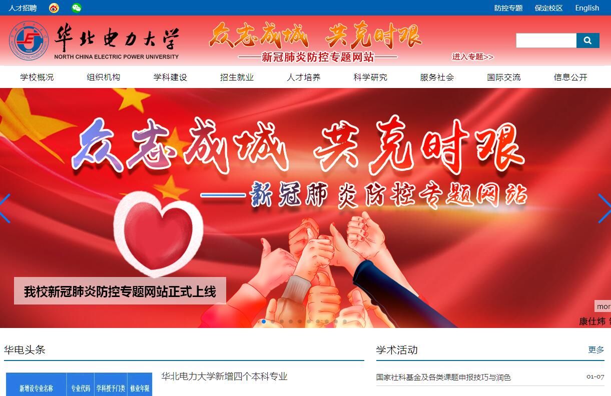 华北电力大学是教育部直属全国重点大学,是国家“211工程”和“985工程优势学科平台”重点建设大学。2017年,学校进入国家“双一流”建设高校行列,重点建设能源电力科学与工程学科群,全面开启了建设世界一流学科和高水平研究型大学新征程。学校1958年创建于北京,原名北京电力学院。学校长期隶属于国家电力部门管理。2003年,学校划转教育部管理,并由国家电网公司、中国南方电网公司、中国华能集团公司、中国大唐集团公司、中国华电集团公司、中国国电集团公司和中国电力投资集团公司等七大电力央企组成的理事会与教育部共建。现华北电力大学理事会成员单位包括七大电力央企和中国电力企业联合会等九家单位。学校校部设在北京,分设保定校区,两地实行一体化管理。学校现有教职工近3千余人,全日制在校本科生2万余人,研究生近1万人。学校占地1600余亩,建筑面积100余万平方米。六十年来,学校承载着为国家能源电力事业培养高素质人才与推进科技进步的历史使命。进入新世纪以后,学校贯彻“学科立校、人才强校、科研兴校、特色发展”的方针,抓紧机遇,加快发展,实现了跨越式快速发展。学校设有电气与电子工程学院、能源动力与机械工程学院、控制与计算机工程学院、经济与管理学院、环境科学与工程学院、可再生能源学院、核科学与工程学院、数理学院、人文与社会科学学院、外国语学院、马克思主义学院等十一大学院,59个本科专业。拥有“电力系统及其自动化”、“热能工程”2个国家级重点学科、25个省部级重点学科;在第四轮学科评估中,电气工程和动力工程及工程热物理两个学科分别位列A档和A-档;“工程学”“环境/生态学”2个学科进入ESI世界前1%行列;拥有5个博士后科研流动站、7个博士学位一级学科授权点、23个硕士学位一级学科授权点和工程硕士、工商管理硕士、公共管理硕士等9个专业学位授权类别,形成了培养本科、硕士、博士的完整教育体系。学校拥有一支积极进取、素质优良、结构合理的高水平师资队伍。现有中国工程院院士2人,双聘院士5人,国家“千人计划”6人,国家“青年千人计划”2人,“国家高层次人才特殊支持计划”6人,“973首席科学家”5人,国家级教学名师1人,全国模范教师2人,全国优秀教师6人,国家杰出青年科学基金获得者9人,“长江学者”3人,国家“百千万人才工程”8人,国家有突出贡献专家3人,“中科院百人计划”入选者7人,38人入选教育部“新世纪优秀人才支持计划”,4支团队列入教育部“长江学者和创新团队发展计划”。学校把人才培养作为中心工作,形成了“厚基础、重实践、强能力、求创新”的人才培养特色,成为教育部首批“卓越工程师教育培养计划”实施高校,发起成立“电力行业卓越工程师培养校企联盟”。学校现有7门国家级精品开放课程,2个国家级教学团队,1个国家级教学名师,11个国家级特色专业,4个国家战略性新兴产业相关专业,3个国家级实验教学示范中心,3个国家级工程实践教育中心,3个国家级虚拟仿真实验教学中心,1个国家级人才培养模式创新实验区。学校积极参与国家创新体系建设,在新能源发电、特高压、智能电网、高效洁净燃煤发电技术、核电技术等重要领域都取得了巨大成果,现有3个国家级科技创新平台、1个国家级国际科技合作基地,6个高等学校学科创新引智基地,以及28个省、部级科技平台及研究基地,学校入选国家创新人才培养示范基地。“十五”以来,承担国家重点研发计划、国家科技重大专项、“973”、“863”、国家科技支撑计划、国家自然科学基金等纵向课题3300余项,获国家级、省部级科技进步奖360余项。科研经费快速增长,科技论文国际三大检索排名在教育部直属高校中排在前列。学校依托大学理事会平台,不断深化产学研合作,与国内外80余家大型能源电力企业达成战略合作关系,共同承担重大研发项目,加快科技成果开发与产业化,连续两次获得“国家电网公司特高压交(直)流试验示范工程特殊贡献单位”称号;学校多方位构建政产学研合作平台,与20余家地方政府签署框架合作协议,围绕战略性新兴产业领域,深化交流与合作,在促进区域科技创新、推动地方经济发展上取得显著成效;学校积极推进校际合作,作为主要发起单位参与组建北京高科大学联盟,实现高校之间的优势资源共享互补,促进校际协同创新。学校全力推进国际化办学进程,与140多个国际知名大学和研究机构开展实质性交流合作,与合作伙伴高校实现了学分互认,开展了学生交流、科研合作、专家互访等项目。积极践行国家“一带一路”倡议,主动承担国家外交任务,承办商务部、科技部多个国家级援外培训项目;同德国黑森州--中国促进中心共同建立了中欧可再生能源创新中心;同蒙古建立了中国—蒙古可再生能源创新中心;作为上海合作组织大学能源学方向中方牵头院校,积极推进上海合作组织大学各项工作,建立上海合作组织大学能源智库;在美国建立的西肯塔基大学孔子学院是北美最大的孔子学院;举办多种模式中外合作办学项目以及与国外高校开展来华留学生、“2+2”联合培养等项目,国际化办学水平不断提升。2017年11月,学校召开第二次党员代表大会,确定了今后一个时期学校的奋斗目标:未来五年的发展目标是“能源电力科学与工程”学科整体水平进