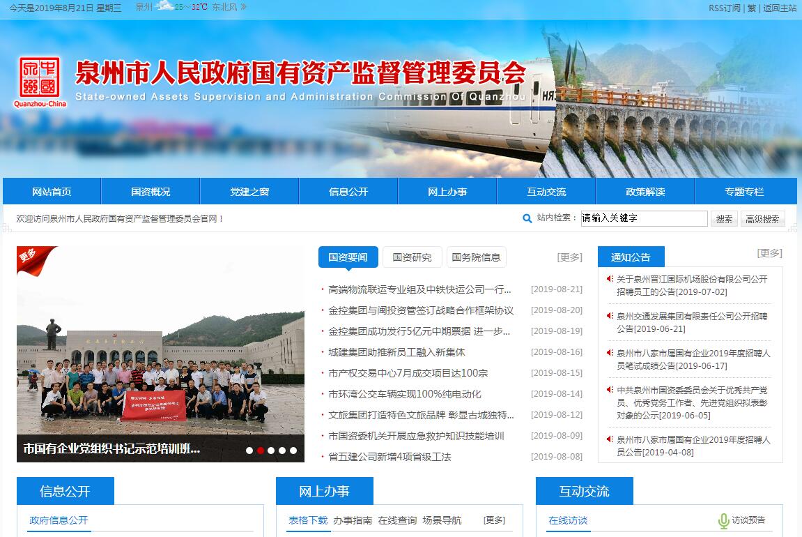 泉州市人民政府国有资产监督管理委员会主要职责:(一)贯彻落实国家、省和市有关国有资产监督管理的法律、法规和方针、政策;起草并组织实施我市有关国有资产管理的规范性文件;依法指导和监督县级政府国有资产监督管理工作。(二)根据市人民政府授权,依法履行出资人职责,负责监管所监管企业(不含金融类企业)国有资产。(三)承担监督所监管企业国有资产保值增值的责任。按照有关规定,定期向市人民政府报告有关国有资产总量、结构、变动、收益等汇总分析的情况,建立健全国有资产保值增值指标体系,制订考核评价标准;通过统计、稽核等方式对所监管企业国有资产的保值增值情况进行监管;负责所监管企业国资分配管理工作,制定所监管企业负责人收入分配政策并组织实施。(四)按照出资人职责,依法参与所监管企业的重大决策。指导推进国有企业改革和重组,指导推进国有企业的现代企业制度建设,依法建立和完善法人治理结构,推动国有经济布局和结构的战略性调整。(五)按照管理权限,通过法定程序对所监管企业负责人进行任免、考核,并根据考核结果进行奖惩。建立符合社会主义市场经济体制和现代企业制度要求的企业负责人的选拔任用机制和激励约束机制。(六)按照有关规定,代表市人民政府向所监管企业派出监事会;负责监事会的日常管理工作。(七)负责组织所监管企业上交国有资本收益,依法承担所监管企业国有资本经营预算编制和执行有关工作。(八)负责所监管国有和国有控股企业的计生、综治、精神文明建设等具体工作,各行业主管部门配合。(九)按照出资人职责,负责督促检查所监管企业贯彻落实国家安全生产方针及有关法律法规、标准等工作。(十)承办市委、市政府交办的其他事项。