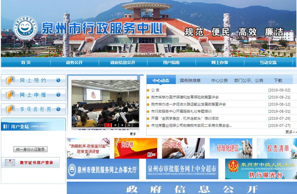 泉州市行政服务中心(以下简称“中心”)于2006年7月31日起正式运行,是泉州市委、市政府深化行政审批制度改革、优化投融资软环境的民心工程,是集信息与咨询、审批与收费、管理与协调、投诉与监督为一体,服务大厅与计算机网络相结合的综合性审批服务窗口。中心设立管委会,作为泉州市人民政府的派出机构,根据市委、市政府授权,主要履行对审批工作的组织协调、管理监督和窗口工作人员的协调管理,以及为审批工作提供服务的职能。中心于2018年10月1日至7日国庆期间整体搬迁至丰泽区东海街道海星街100号东海大厦。2018年10月8日,市行政服务中心实体大厅将试运行对外办理业务,届时,位于妙云街160号的原市行政服务中心停止办理各项业务。市行政服务中心的整体搬迁,不仅是我市行政服务发展史上的一个里程碑,也是一项浩大的惠民工程,对我市推进“放管服”改革,打造一流营商环境,加快行政服务发展,更好地为民便民利民,都将起到巨大的推动作用。目前,按照“能进则进、应进必进”的原则,中心全力打造功能齐全、环境优雅的政务“超市”。进驻单位92个(含22个综合窗口),工作人员初步统计为1000余人。除现中心整体平移外,新进驻30个单位(医保、社保、公安出入境、住房公积金、税务、人才人事就业、自来水、国家电网、公证处、中化、中石化、中石油、燃气、邮政、电信、移动、联通、广电网络、闽通卡、微笑自行车、数字CA证书、交通一卡通、运管培训、兴业银行、建设银行、金控集团、廉租房办证等)。新行政服务中心面积4.3万平方米,分为裙楼及塔楼两部分,功能布局借鉴了福州、厦门等地的好经验好做法。裙楼部分由半地下室至4层组成,作为办事大厅,功能布局为:半地下室为便民服务区(入驻医保、社保、水电等便民单位),一层为市场准入和投资建设服务区;二层为不动产服务区;三层为社会民生及中介服务区;四层为公共资源交易服务区(含公共资源、政府采购、产权交易三个单位成建制入驻)。塔楼部分由5至11层组成,作为中心管委会、成建制进驻部门以及会议室、党员活动室等配套办公用房使用。中心将深入贯彻以人为本理念,把满足企业和群众的更高需求作为我们的奋斗目标,努力打造温馨倍至的百姓之家。为满足群众个性化需求,新增了母婴室、直饮水、咖啡厅、阅览室、休闲区、餐饮区等人性化设施。为减少群众办事“来回跑”,设置了免费中介、复印配套、微信交税等功能,拟新录用50名导办人员随时随地提供导办服务。为方便群众安排时间办事,新中心调整服务时间,周一至周五实行朝九晚五工作制,缩短群众中午等候时间;周六和周日在二手房交易、公安出入境等高频事项实行周末不停休。办事大厅已建成了大数据中心、电子监察室、楼宇自控系统等先进设施,窗口公告服务全面实现电子化。搬迁后将大力推进“互联网+政务”服务工程、“e泉州”便民服务工程、24小时自助服务工程“三项工程”建设,引导事项上网办理,努力打造“不打烊”的“数字政府”。中心将推进线上线下服务融为一体,在办事大厅每个楼层设立自助上网区、自助服务区,每个区域设立网上办理引导员,拓展在线预约、在线咨询、在线申报、电子监察等服务功能,开发微信、支付宝等支付功能,加强电子证照、电子文件和电子印章的应用,努力提升网办率,最大限度地方便企业和群众办事。中心将以推进放管服改革为指引,以提高服务效率为核心,积极改革创新服务模式。全面推行“两项改革”:即“一号一窗一网”改革、企业开办“一窗式”审批改革;全面深化“三项改革”:即规范行政服务自由裁量权改革、工程建设项目并联审批改革、项目和办件台账管理改革。尤其是实行“一号一窗一网”改革,今后将不再按部门设置窗口,而是按群众“办成一件事”为标准,将窗口整合为“市场准入、投资建设、社会民生、便民服务、中介服务”五个主题式办事体验服务厅,并率先在投资建设、不动产登记、出入境等领域实施“一窗受理、集成服务”,将有效地缩短办件时间。中心实行“八六七”制度,即对进驻中心的审批服务项目实行“八公开”(公开服务内容、审批依据、申报条件、申报材料、办理程序、承诺期限、收费标准、办事结果)、“六办理制”(一般事项即时办理制、复杂事项限时办理制、多部门交叉事项联合办理制、控制事项明确答复制、上报事项协助办理制、特急事项特殊办理制)、“七件管理制”(即办件、承诺件、联办件、报批件、退回件、补办件、特办件)。中心按照行政审批、执法监管、公共服务适度分离的原则,把原分散于部门内部各科室的审批职能剥离,并高效集聚,在部门内设科室总数保持不变的情况下,专设审核审批科成建制进驻中心运作,推动政府职能转到服务、监管、执法等环节上,实现政府管理方式创新。中心建立网上审批管理信息平台,集政务公开、预申报预审核、审批业务流转和部门审批系统、电子监察等主要功能于一体,同时,融合公文处理系统,导入数字证书、电子印章等安全认证技术,在全国率先推行面向企业全程式网上审批。目前,中心大力整合各部门审批信息资源,建立审批专项数据库,实现审批信息的共建共享。同时开通中心官方微信、手机APP等便民设施,为百姓办事提供人性化信息服务