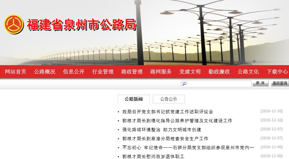 泉州市公路局现有干部职工1073人,其中管理人员 128人、专业技术人员211人,拥有高级职称54人、中级职称105人,一线养路工656人,临时工336人,离退休人员896人。垂直管理直属、晋江、石狮、惠安、泉港、南安、安溪、永春、德化9个公路分局和桥梁隧道管理中心、路网监测与应急处置中心等11个正科级事业单位。负责管养泉州市境内专养公路1338.881公里,其中国道5条722.335公里、省道6条616.546公里;一级公路30.102公里、二级公路997.224公里、三级公路225.554公里、四级公路86.001公里;沥青混凝土路面185.375公里、水泥混凝土路面1138.93公里、沥青路面14.579公里。泉州市公路局先后荣获全国职工之家、交通部“文明行业子行业”、福建省文明单位、福建省“五一劳动奖状”等荣誉称号。全系统有省级“文明单位”4个、市级“文明单位”4个、县级文明单位3个;全国模范职工之家2个、模范职工小家8个,省级模范职工之家9个、模范职工小家22个;有68人次被授予全国、省、市“劳动模范”、“五一劳动奖章”等荣誉称号,其中养路工康清洁获得“全国先进工作者”荣誉称号。依照《中华人民共和国公路法》、《公路安全保护条例》、《福建省公路路政管理条例》等法律法规,负责辖区内公路(不含高速公路、农村公路,以下称专养公路)建设、养护、管理等工作。具体职责如下:一、贯彻执行国家和省、市有关公路的法律法规、规章和政策;参与起草公路行业的地方性法规、规章、标准、政策并组织实施;制定本辖区专养公路行业规章制度和实施细则。二、参与编制辖区公路网络规划等相关专项规划;制定辖区专养公路行业发展规划,提出专养公路年度计划并组织实施。三、负责辖区专养公路专案工程的审核审批和验收等工作;按有关规定对专养公路建设工程可行性研究提出行业审查意见;参与专养公路建设项目中重大技术问题的审核和建设过程中重大问题的协调。四、负责辖区专养公路路网监测,开展专养公路突发事件的预报预警和信息发布工作;负责辖区专养公路应急处置工作,组织开展应急演练,抓好应急队伍建设、物资储备(含交通战备保障)等工作。五、负责辖区专养公路路政管理;承办专养公路市级许可项目的审核审批;参与协调交通综合行政执法。六、负责辖区专养公路财务工作的行业管理和审计监督;对所属单位国有资产实施监督管理;负责辖区专养公路行业统计、分析工作。七、负责辖区专养公路行业安全生产管理工作;参与辖区专养公路安全事项处理工作;负责辖区专养公路行业社会管理综合治理和平安建设工作。八、负责辖区专养公路行业科技、教育工作;组织开发、推广公路行业科技成果和技术创新;组织实施辖区专养公路行业环境保护、节能减排工作。九、指导辖区专养公路系统党建和精神文明、公路文化建设。十、完成市委、市政府和上级交通公路部门交办的其他工作。